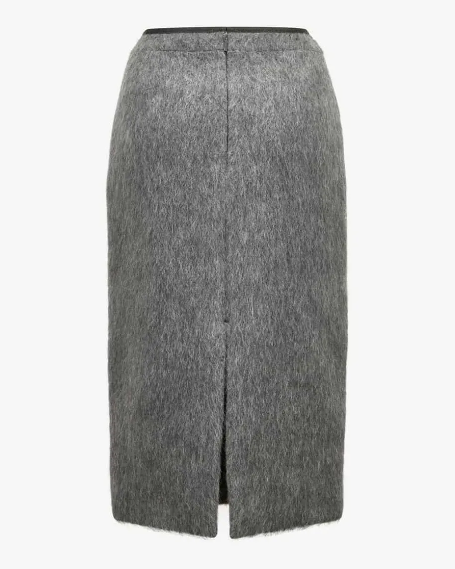 Wollrock für Damen von Moncler in Anthrazit. Das melierte Modell überzeugt mitweichem Mohair-Woll-Mix, der für angenehme Tragemomente sorgt. Die schmalePassform mit dem dekorativen Schmuck-Detail an der Taille rundet den Stylemodisch ab.