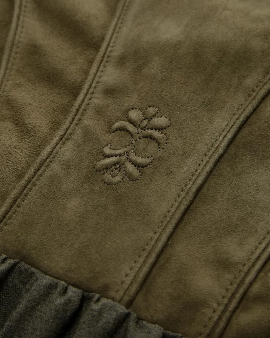 Linderhof Dirndl lang mit Schürze für Damen von Meindl in Dusty Green. Das inZusammenarbeit mit LODENFREY entstandene Modell spiegelt die hochwertigeLederhandwerkskunst von Meindl gekonnt wider. Das Mieder besticht durch dieVerwendung des weichen Ziegenvelours, welches durch die handgemachtenSilberknöpfe traditionell ergänzt wird. Zugleich setzt der Rock aus feinem Woll-Mix das klassische Design perfekt in Szene, während die Schürze mit Paisley-Dessin das Gesamtbild harmonisch komplettiert.