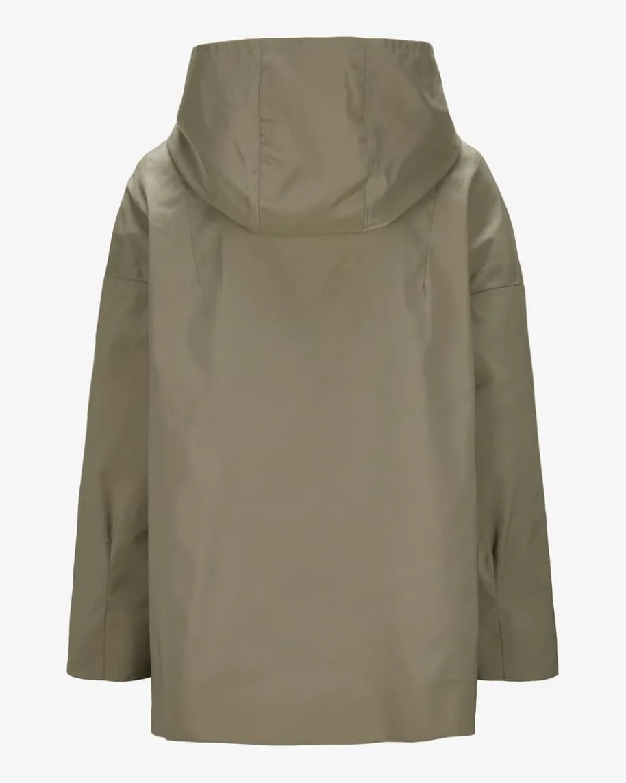 Regenjacke für Damen von Cinzia Rocca in Khaki. Das Modell präsentiert sich dankder cleanen Aufmachung mit wasserfester Eigenschaft als funktioneller Übergangs-Favorit, welcher durch die legere Passform mit Kapuze zeitlos-modern in Szenegesetzt wird.