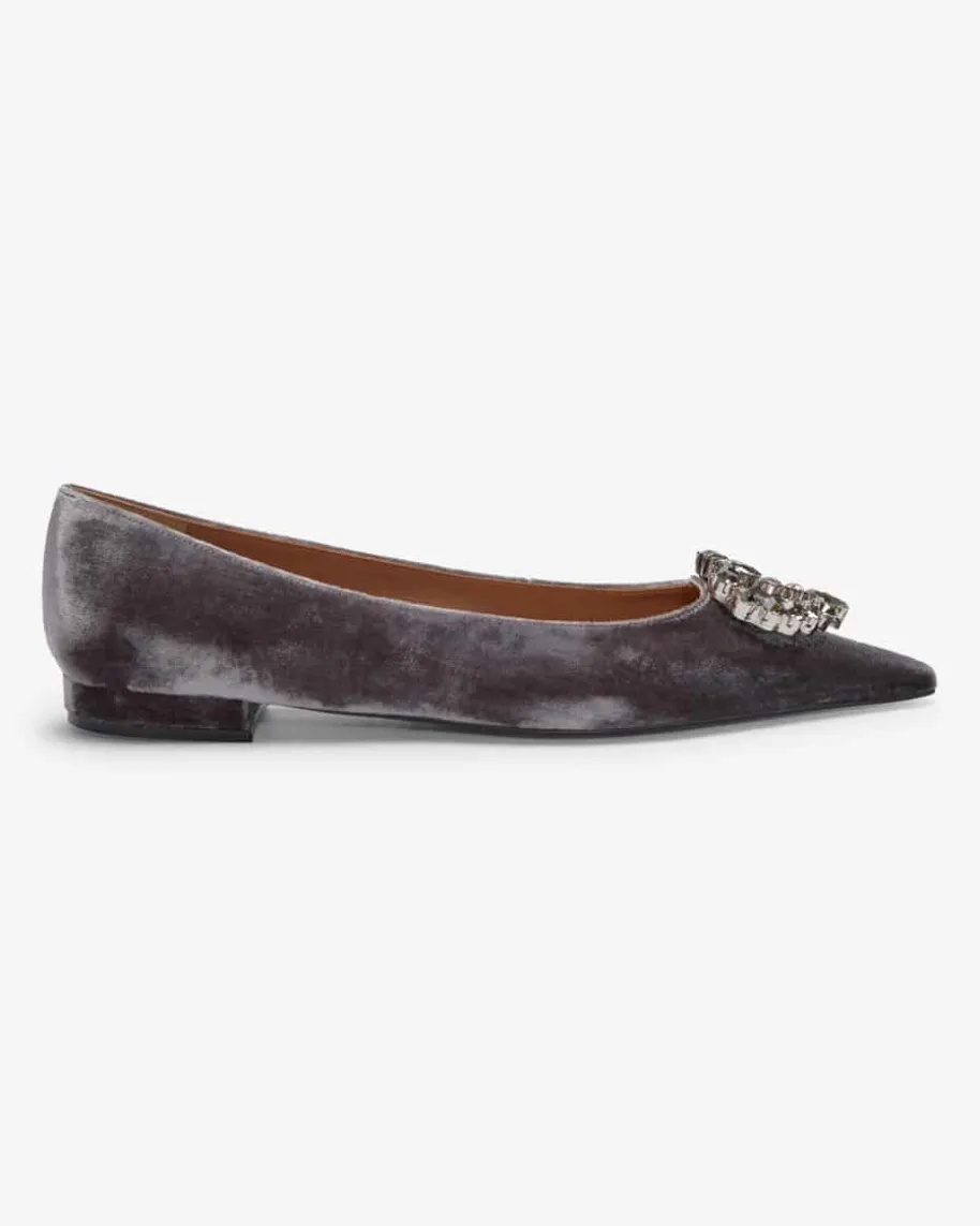 Santana Ballerinas für Damen von Festa in Grau. Das feminine Modellbesticht durch die stilvolle Samt-Aufmachung, welche zusammen mitder spitzen Form und dem dezenten Absatz den Schuh zu einem festlichen Begleiteravancieren lässt. Gleichzeitig rundet die markante herzförmige Brosche mitSchmuckstein-Applikationen das Design elegant ab.