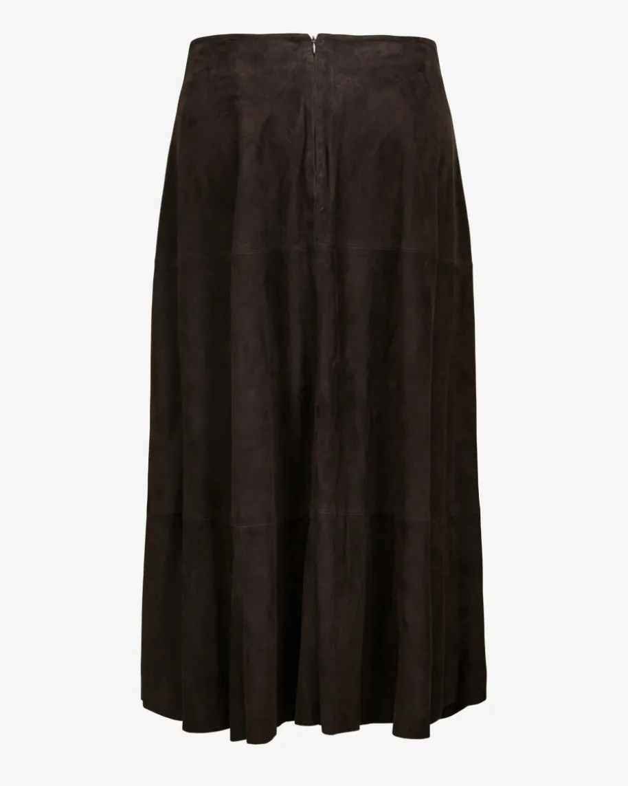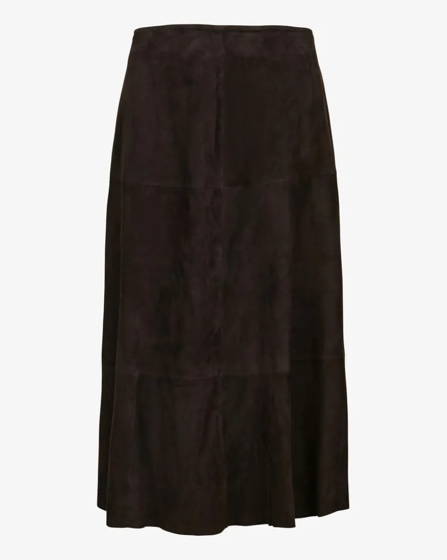Velourslederrock für Damen von (The Mercer) N.Y. x LODENFREY in Dark Chocolate.Gegründet in New York, steht die Marke für minimalistischen Luxus mit urbanemAnspruch. Dieses exklusive Modell in softer Suede-Qualität überzeugt mitangenehmen Tragemomenten, während die schlichte Aufmachung einen zeitlosenBegleiter für moderne Styles kreiert.