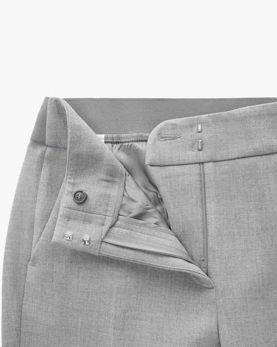 7/8-Hose für Damen von Peserico in Hellgrau. Dank rückseitigem Gummibund sowiesofter, aber blickdichter Material-Qualität besticht das Modell mit hohemTragekomfort, während die verkürzte Silhouette mit ausgestelltem Bein inKombination mit klassischen Anzughosen-Details einen femininen Power-Look fürstilvolle Office-Looks kreiert.