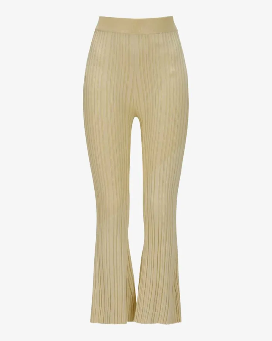 7/8-Hose für Damen von Nanushka in Hellgelb. Das Modell in gewolltunregelmäßigerRippstrick-Qualität besticht durch den weichen Merinowoll-Viskose-Mix sowie demelastischen Bund mit haptischen Wohlfühlmomenten, während der Bootcuteinen modischen Loungewear-Liebling zaubert.