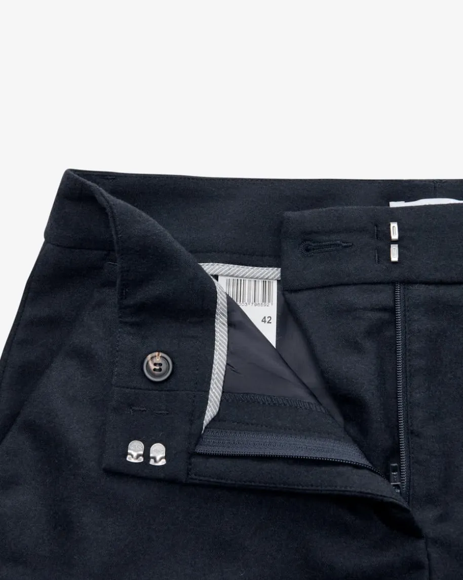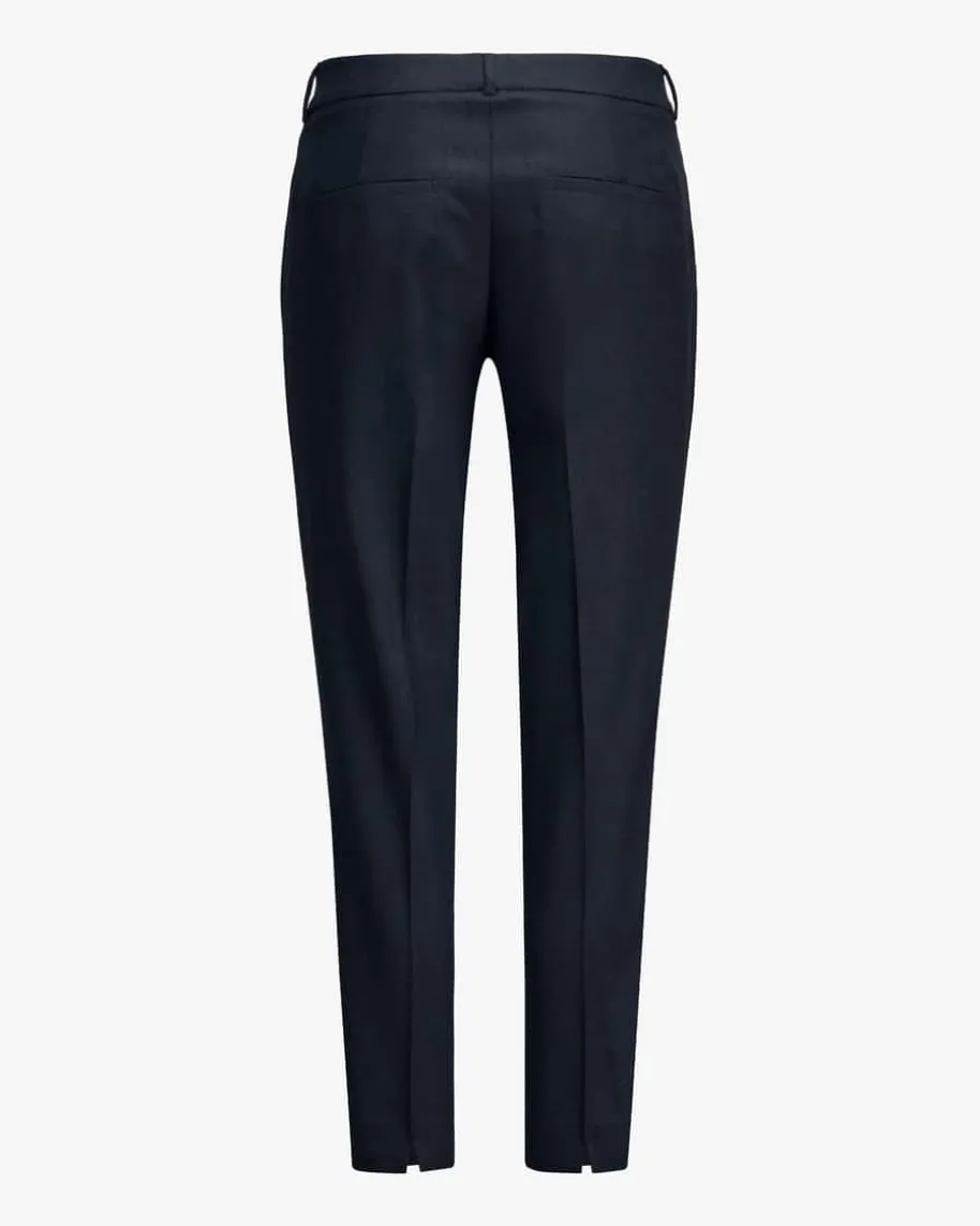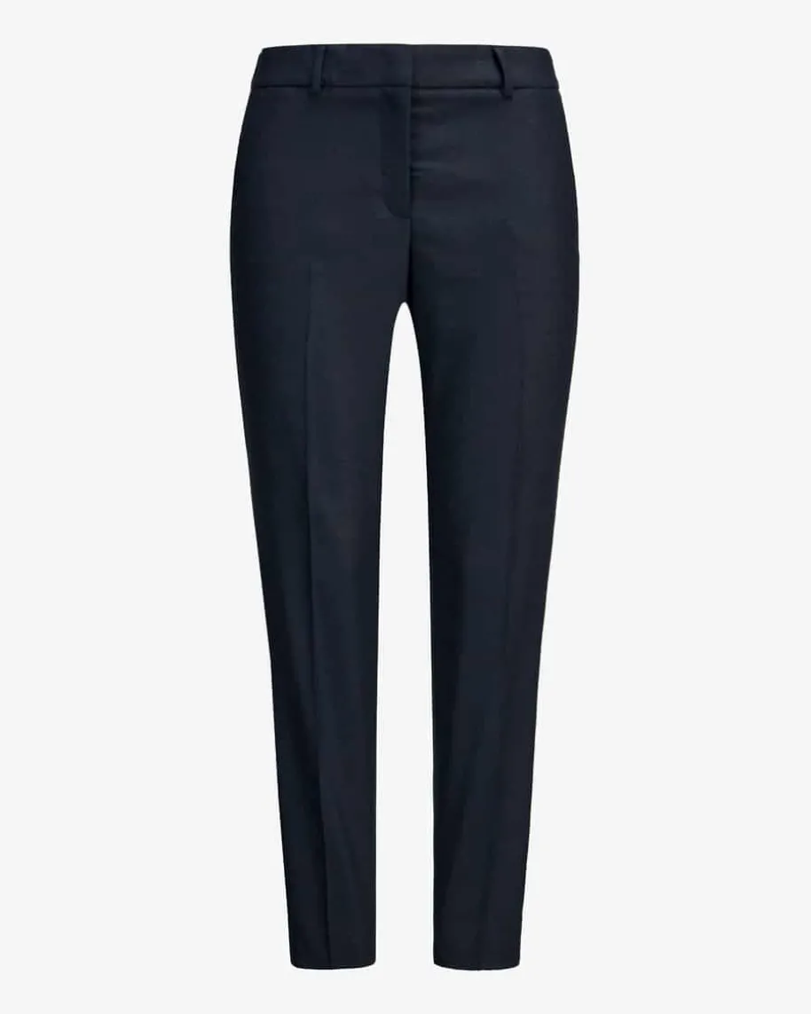 7/8-Hose für Damen von Peserico Easy in Navy. Das Modell begeistert mitschmalem, leicht verkürztem Bein und angenehm weichem Flanell-Woll-Mix.Klassische Details runden den melierten Style gekonnt ab.