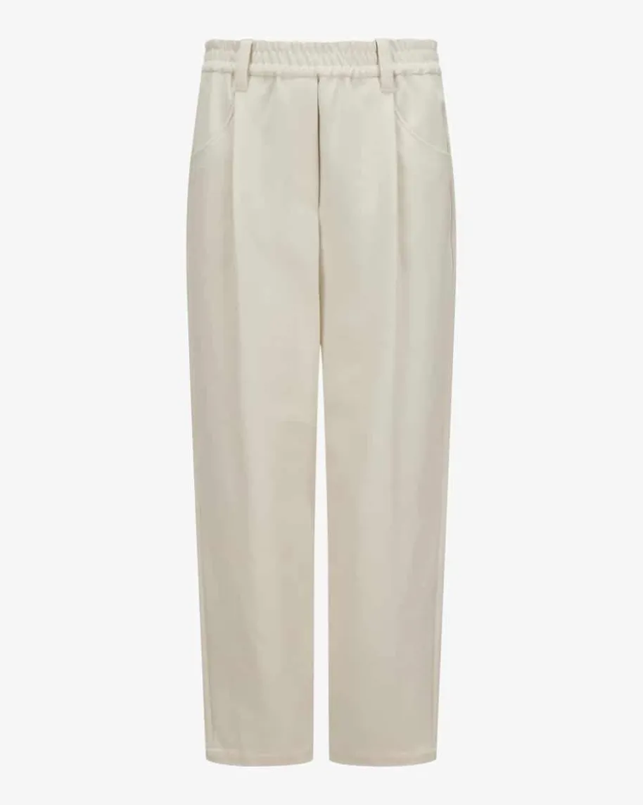 7/8-Jerseyhose für Damen von Brunello Cucinelli in Ecru. Dank der angenehmenJersey-Qualität sowie dem elastischen Gummibund präsentiert sich das Modell inlegerer Aufmachung, während die weite Passform mit zulaufendem Bein und dieBundfalten das Gesamtbild modern vollenden.