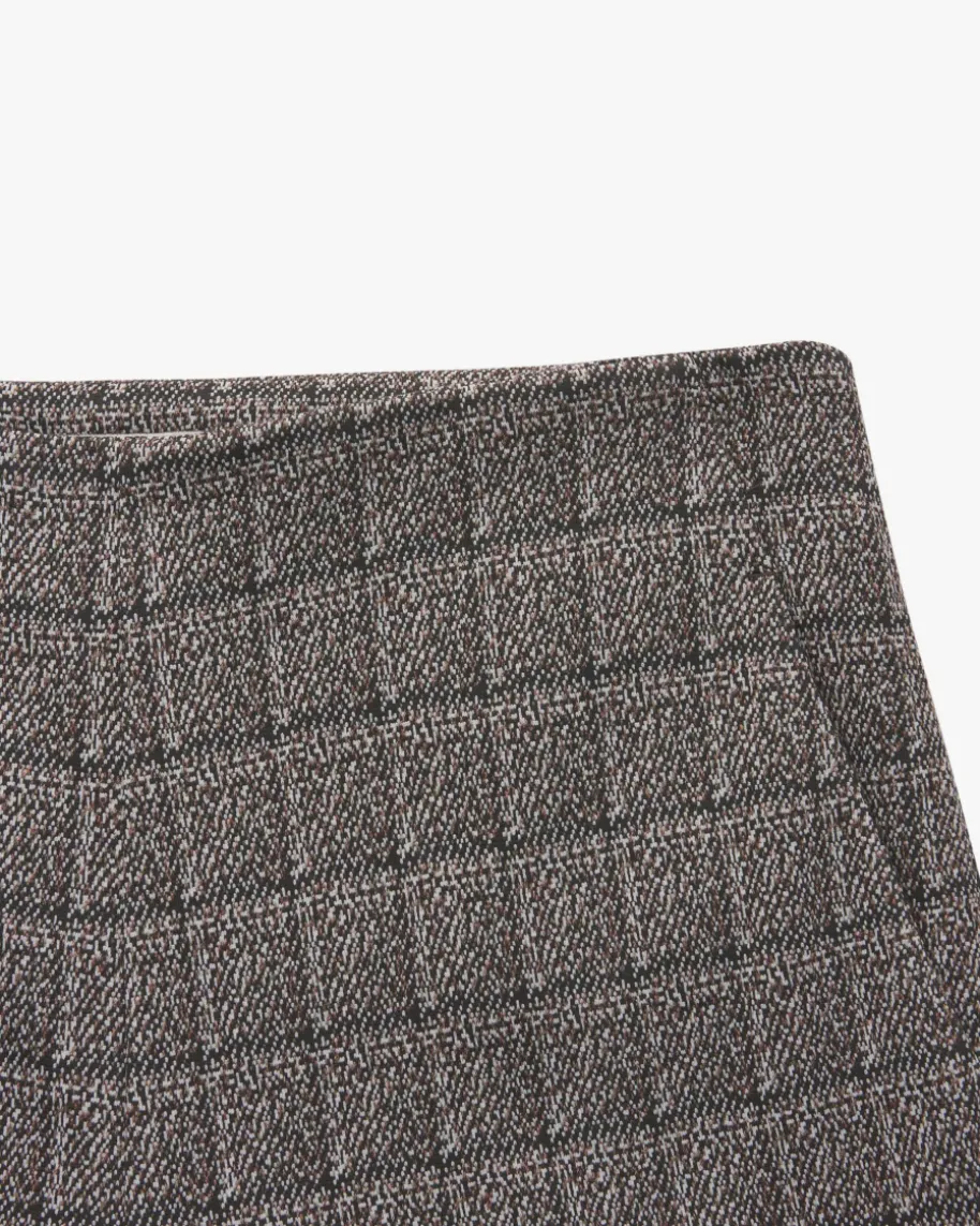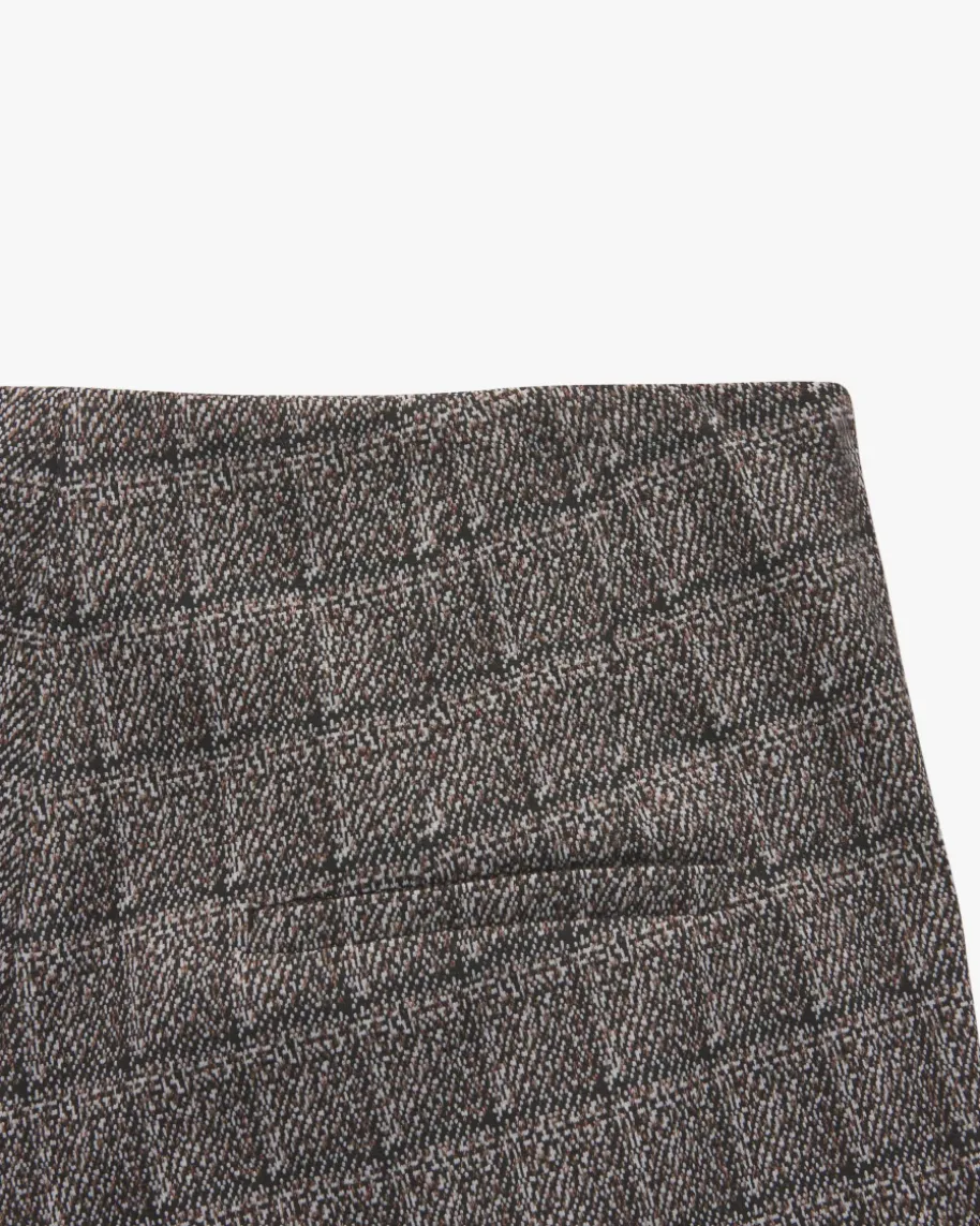 7/8-Jerseyhose für Damen von Odeeh in Schwarz, Braun und Weiß. Das Modellpräsentiert sich in gestrickter Jersey-Qualität, die für hohen Tragemomentesorgt und zusammen mit der verkürzten Silhouette mit ausgestelltem Bein für einefeminine Passform sorgt. Zugleich verleiht das Karomuster einen modernenCharakter.