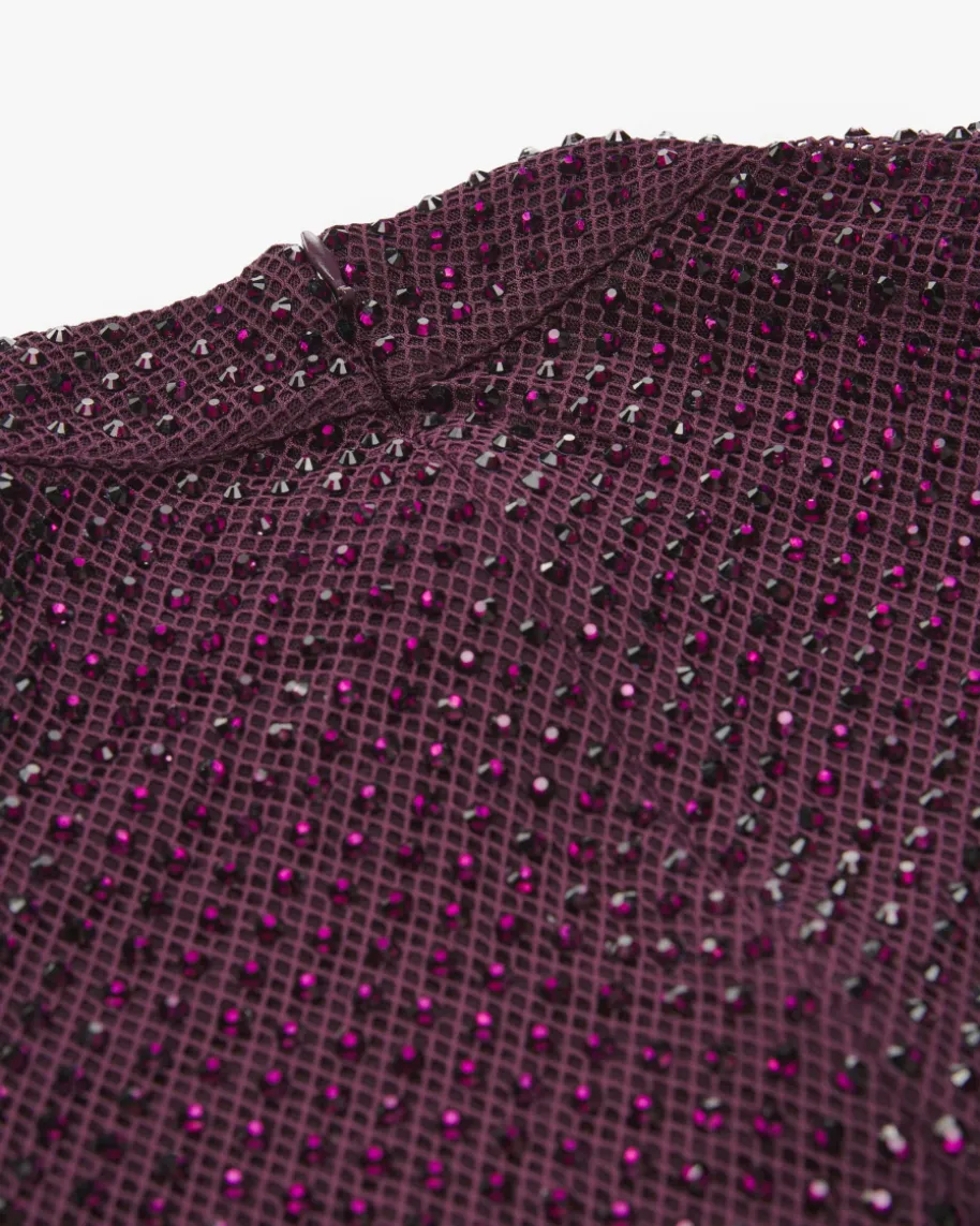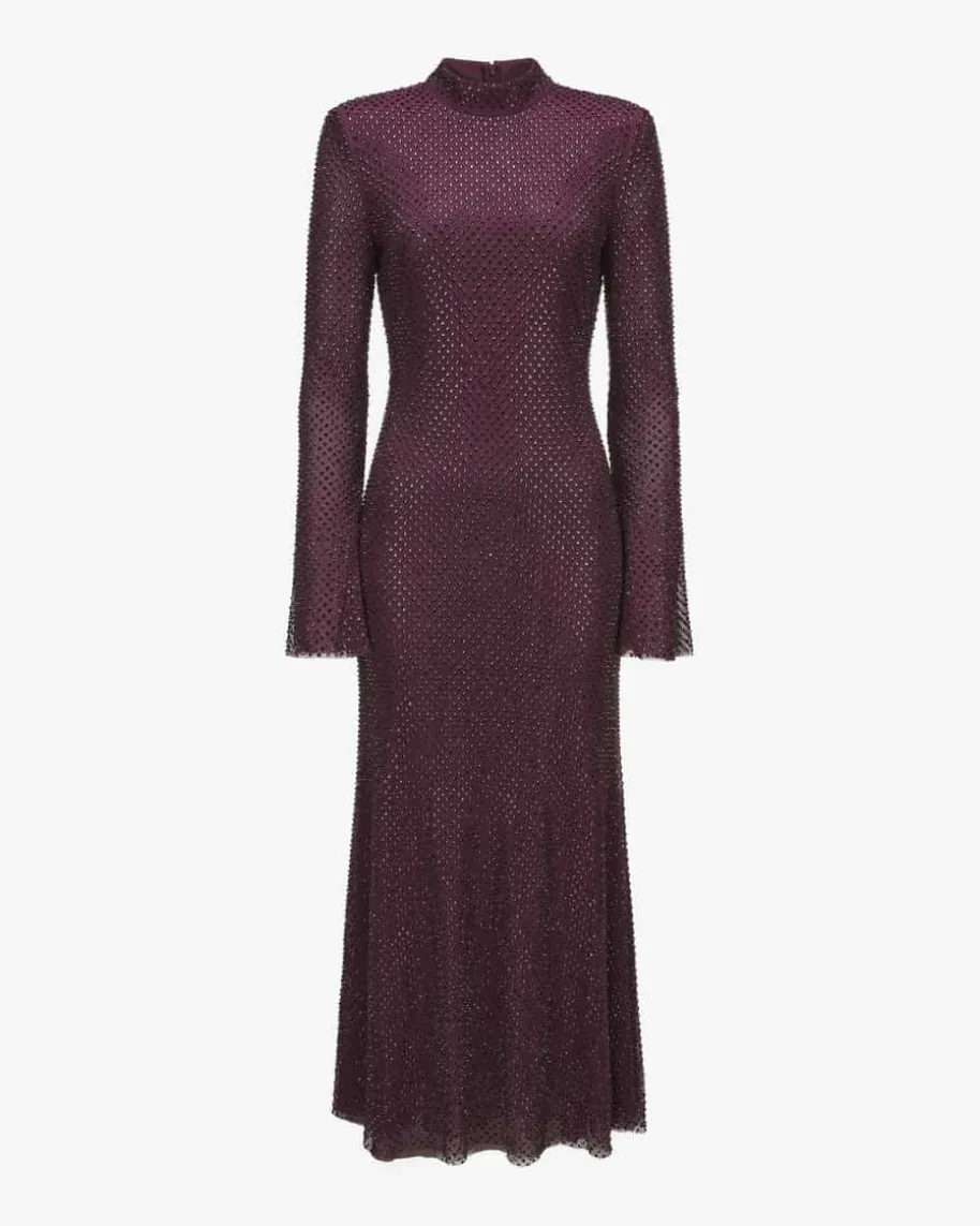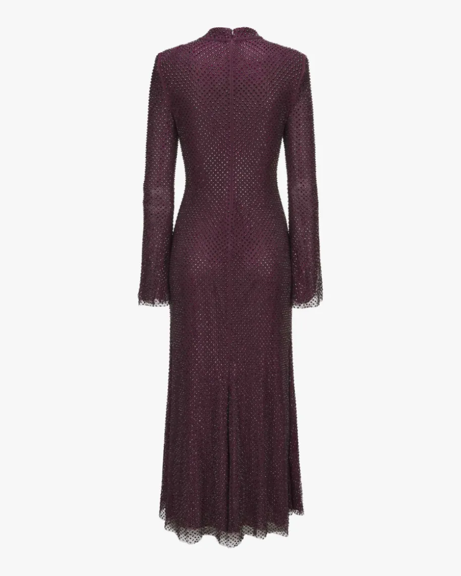 Abendkleid für Damen von Self-Portrait in Aubergine. Das Londoner Label stehtfür moderne Cocktailkleider mit Spitze, Cut-Outs und femininerDetailverliebtheit. Dieses Langarm-Modell präsentiert sich in schwerem, mitSchmucksteinen besetztem Netz-Design mit zweiter, semi-transparenter Mesh-Schicht. Zugleich kreiert die taillierte Fit n‘ Flair-Silhouette mitTrompetenärmeln einen femininen Hingucker-Look für besondere Anlässe.