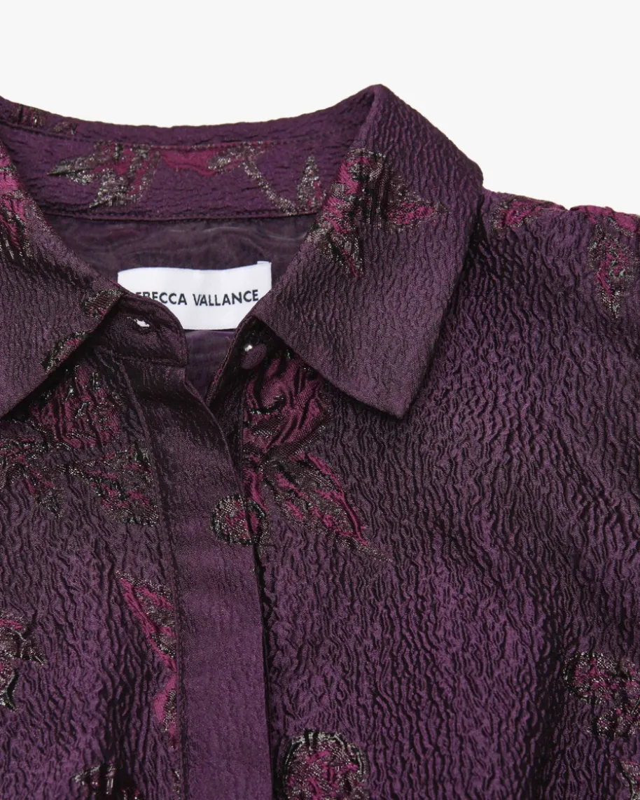 Afina Hemdblusenkleid für Damen von Rebecca Vallance in Bordeaux. Das Modellbegeistert mit changierender Crêpe-Qualität im romantischen Blumen-Dessin undraffinierten Falten-Details, während die taillierte Schnittführung mitausgestelltem Rock und Puff-Ärmeln eine besondere Blusenkleid-Silhouette mitRomance-Flair schafft.