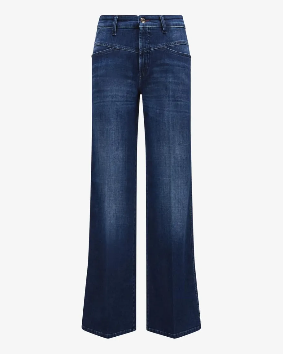 Aimee Jeans für Damen von Cambio in Dunkelblau. Während das Modell dank demelastischen und leichten Baumwoll-Mix hohen Tragekomfort verspricht, kreierender ausgestellte Schnitt sowie schräg verlaufende Abnäher einen modernen Denim-Look für jeden Tag.