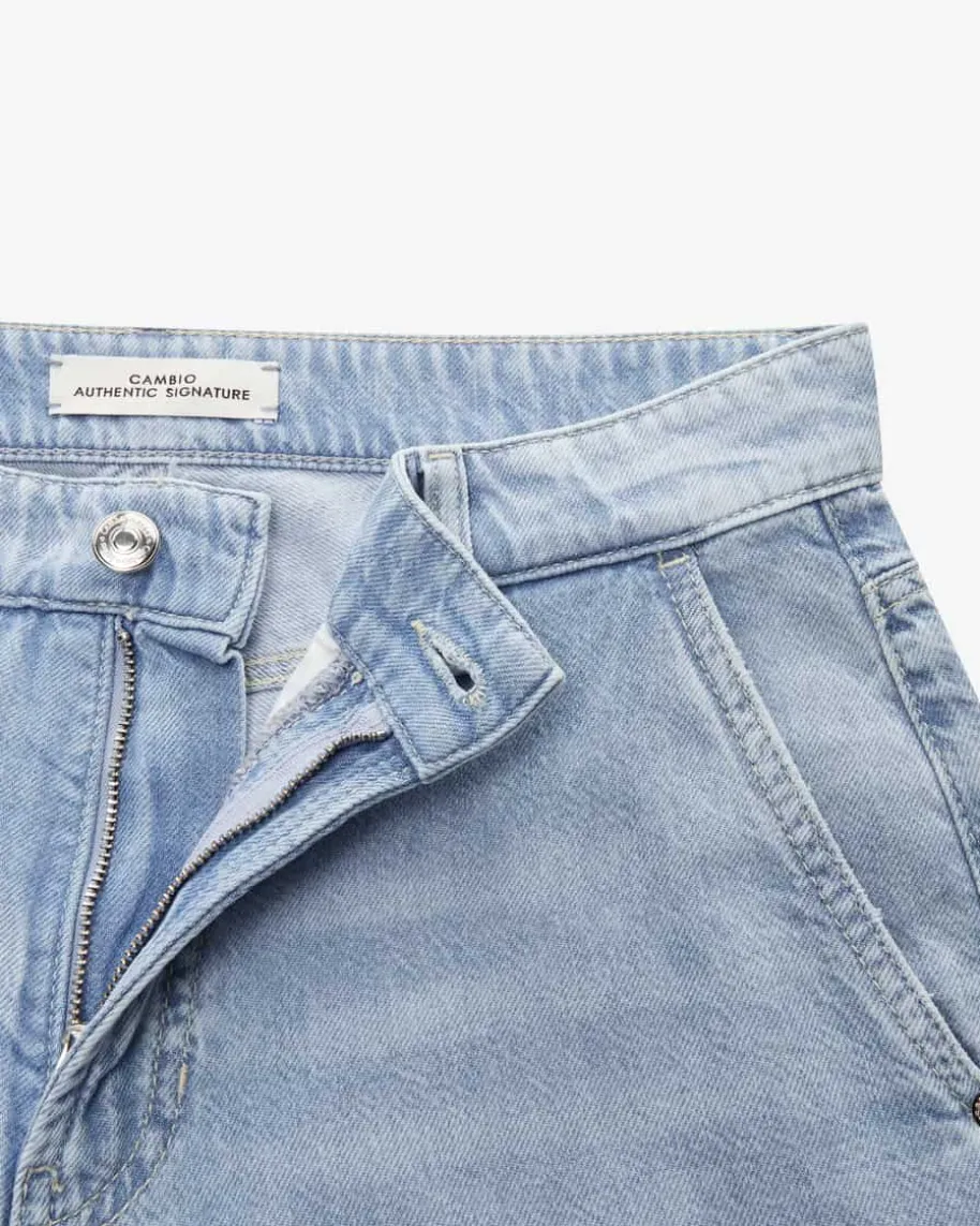 Alek Jeans für Damen von Cambio in Hellblau. Das Modell präsentiert sich inhochwertiger Baumwoll-Mix-Qualität, welche angenehme Tragemomente schafft.Während die weite Passform und dezente Waschung einen modernen und zeitlosenJeans-Style schafft.