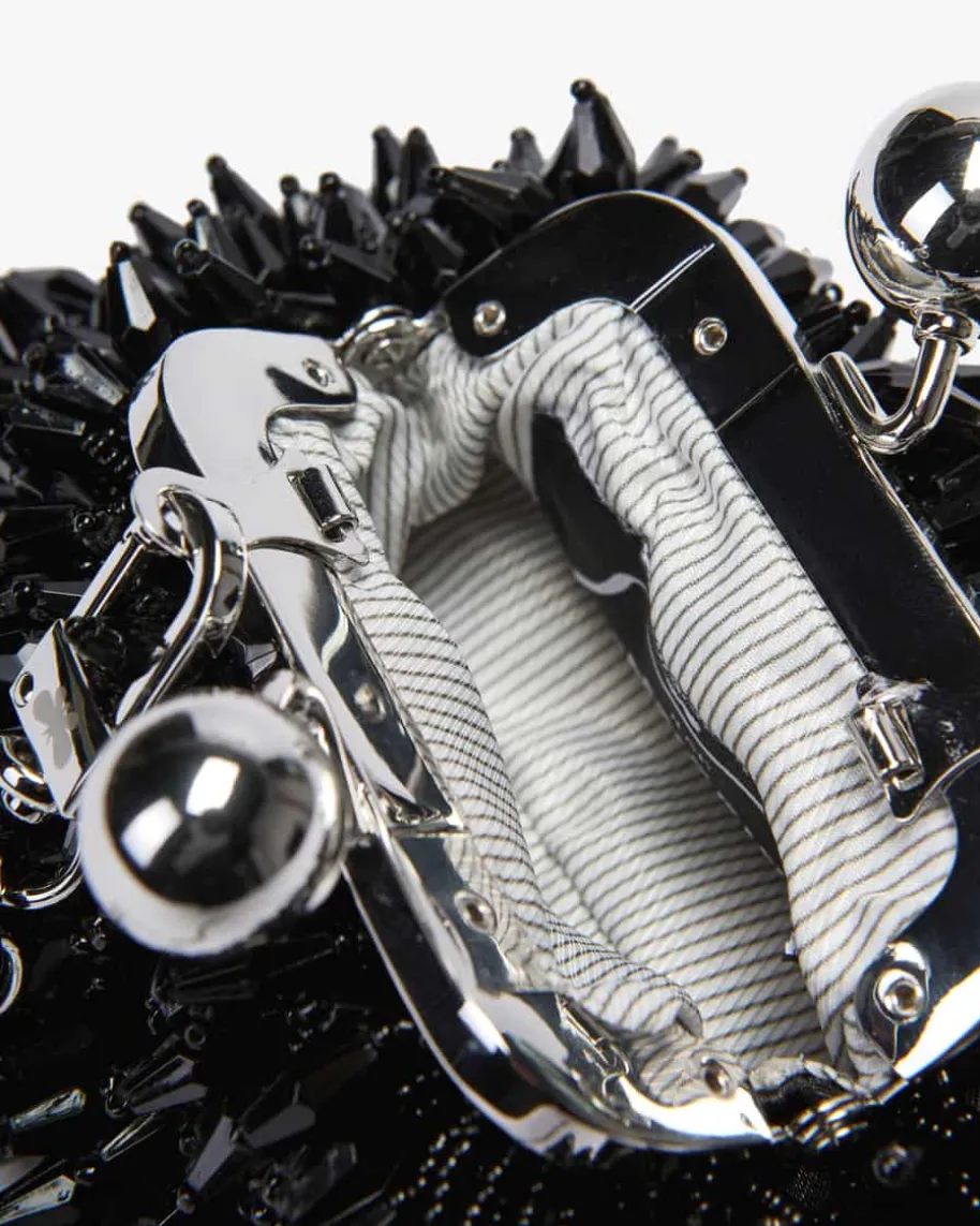 Alfio Umhängetasche für Damen von Weekend Max Mara inSchwarz und Silber. Dievielseitige und praktische Pasticcino Bag aus Satin lässtsich dank dem Nano-Format ideal an Taschen und Hosen befestigen und ist damitimmer zur Hand.Zugleich sorgen die aufgestickten Strass-Steine für dasgewisse Etwas.