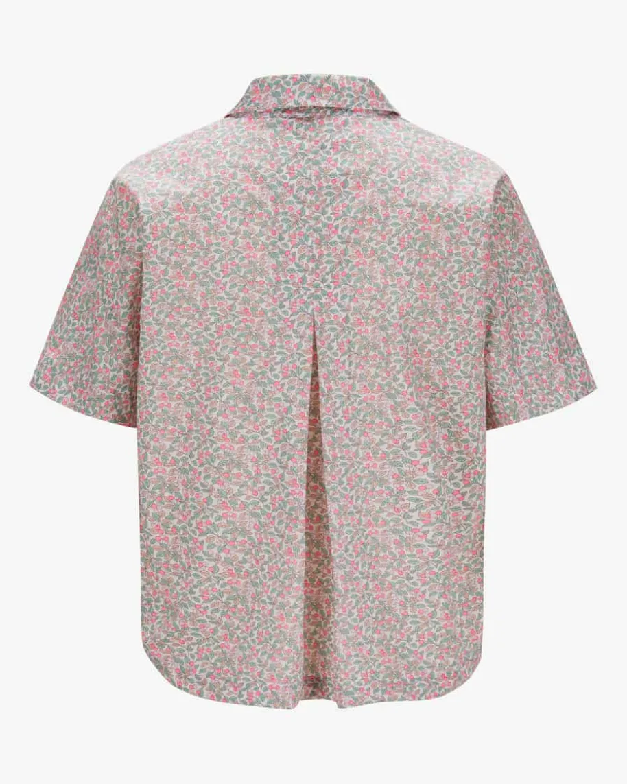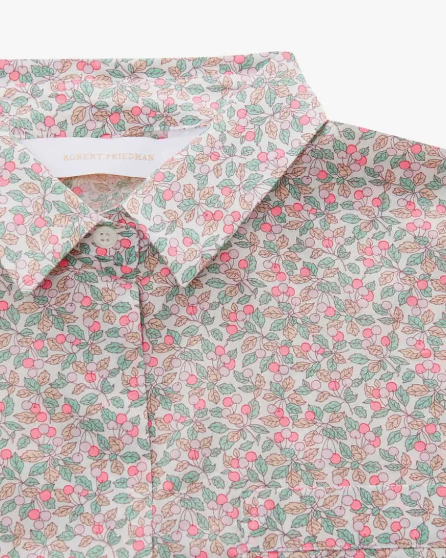 Alicia Hemdbluse für Damen von Robert Friedman in Creme, Neon-Pink und Grün. DasModell präsentiert sich dank der Hemdblusen-Aufmachung in modisch-legererAufmachung, während das Allover-Dessin mit floralem Motiv ein harmonischesGesamtbild kreiert.