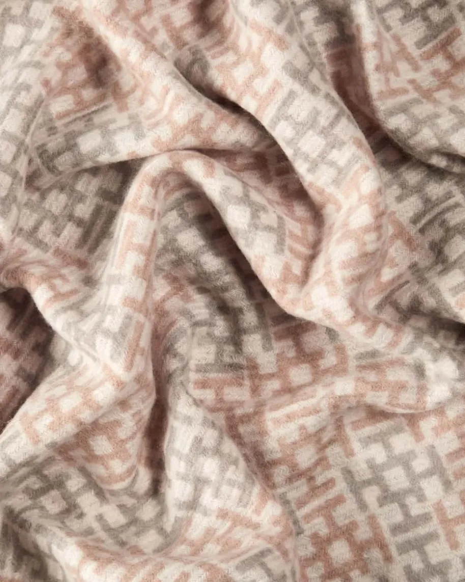 Alikibi-Tri Cashmere-Tuch für Damen von Hemisphere in Camel, Grau und Creme. Derdreieckige Schal aus hochwertiger Cashmere-Wolle punktet mit einem weichenGriff, während das Monogramm-Muster ein stilvolles Accessoire kreiert, welcheszugleich als Cape getragen werden kann.