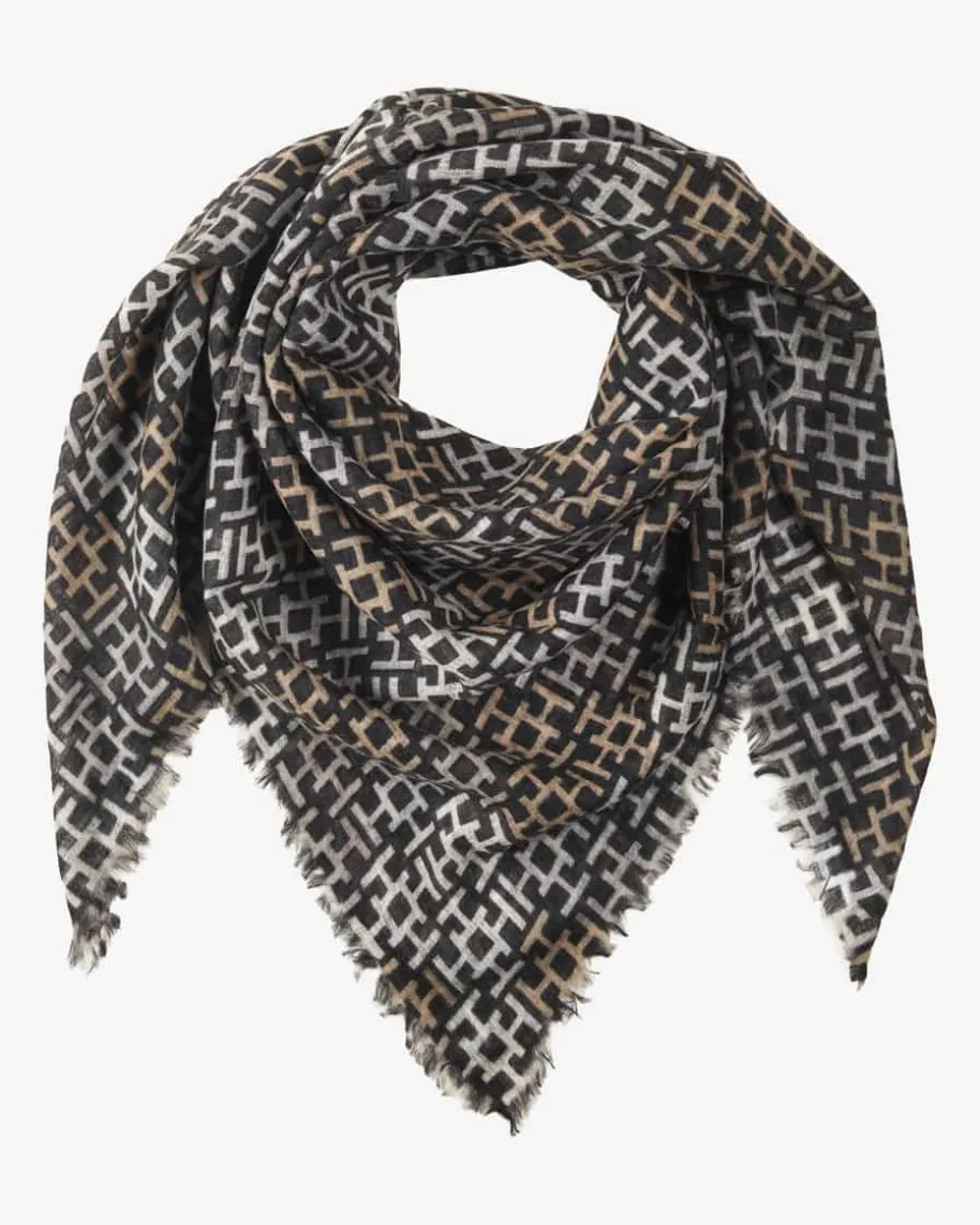 Alikinicki Cashmere-Tuch für Damen von Hemisphere in Schwarz, Weiß und Beige.Das Modell erhält dank der hochwertigen Cashmere-Qualität einen weichen Griffund besonders leichte Haptik, während das Monogramm-Muster ein stilvollesAccessoire mit labeltypischem Charme kreiert.