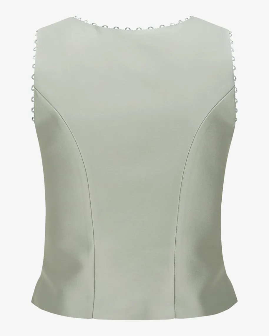 Alva Trachten-Mieder für Damen von Kinga Mathe in Salbei. Mit diesemchangierenden Spencer-Modell erhalten Sie einen modischen und dennochtraditionellen Eyecatcher für vielseitige Trachten-Looks – egal ob kombiniertzum femininen Rock oder zur rustikalen Lederhose.