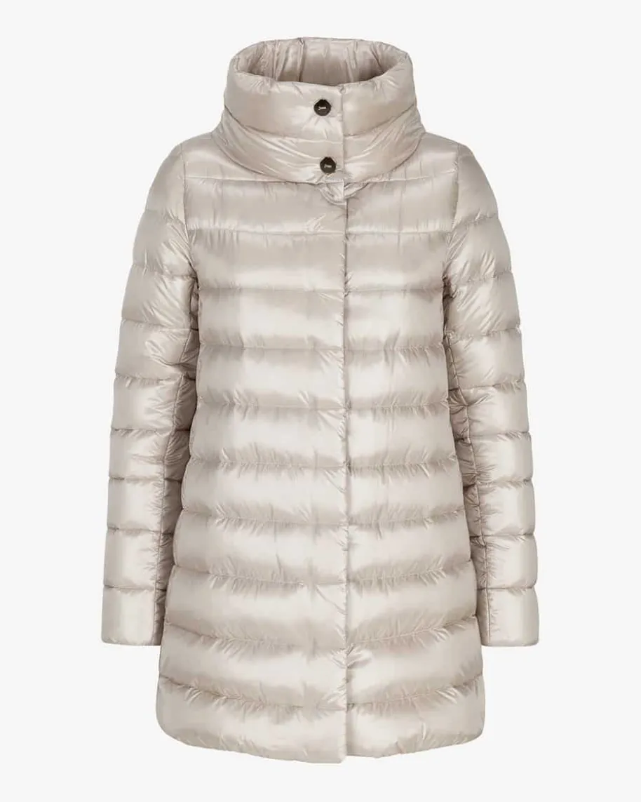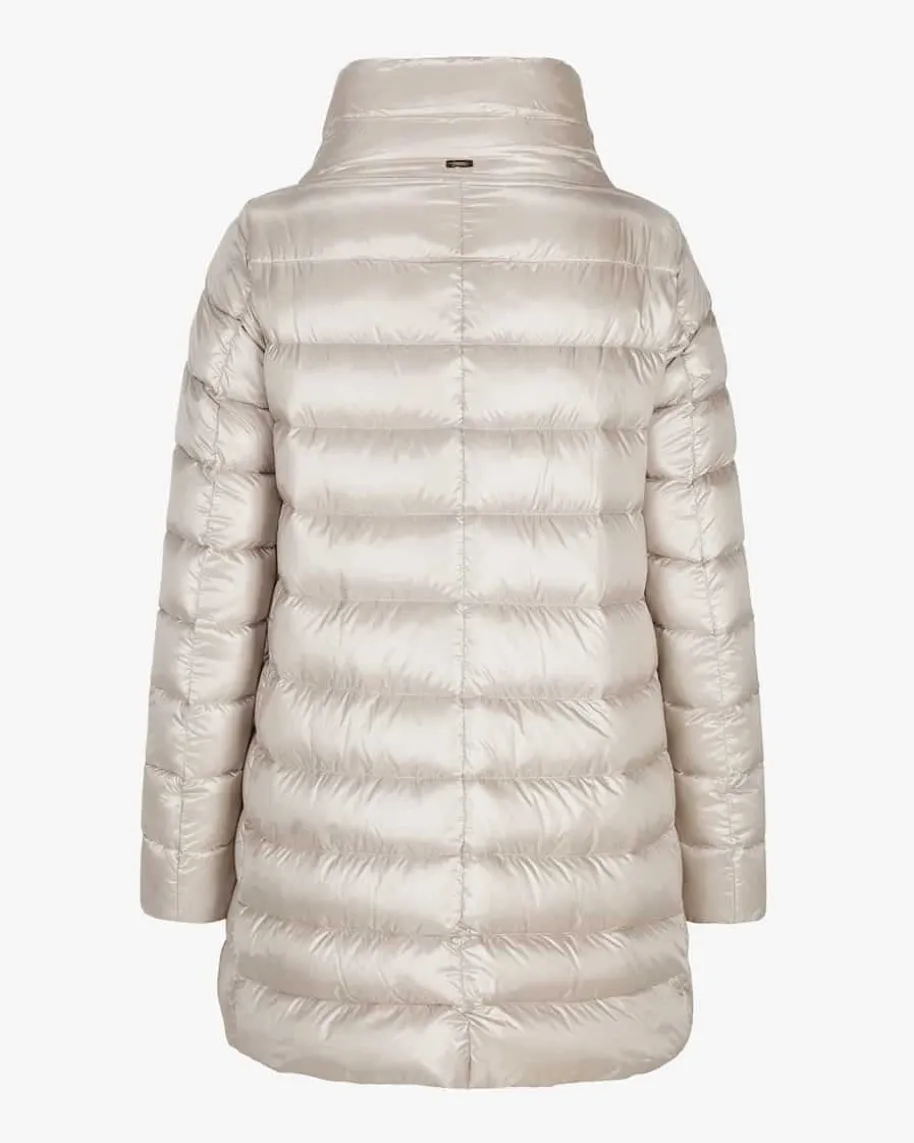 Amelia Daunenmantel für Damen von Herno in Nude. Das italienische Label hatsich mit seinen besonders weichen und leichten Daunen-Modellen einen Namen inder Modebranche gemacht und ist für Liebhaber nicht mehr wegzudenken. DieserKlassiker präsentiert sich in gewohnt changierender Stepp-Optik und hält ankalten Tagen nicht nur warm, sondern punktet auch durch die modische A-LinienPassform.