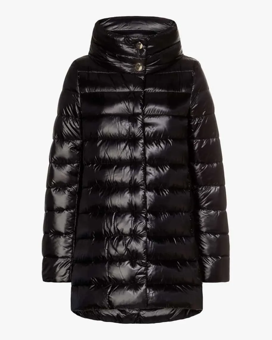 Amelia Daunenmantel für Damen von Herno in Schwarz. Das italienische Label hatsich mit seinen besonders weichen und leichten Daunen-Modellen einen Namen inder Modebranche gemacht und ist für Liebhaber nicht mehr wegzudenken. DieserKlassiker präsentiert sich in gewohnt changierender Stepp-Optik und hält ankalten Tagen nicht nur warm, sondern punktet auch durch die modische A-LinienPassform.