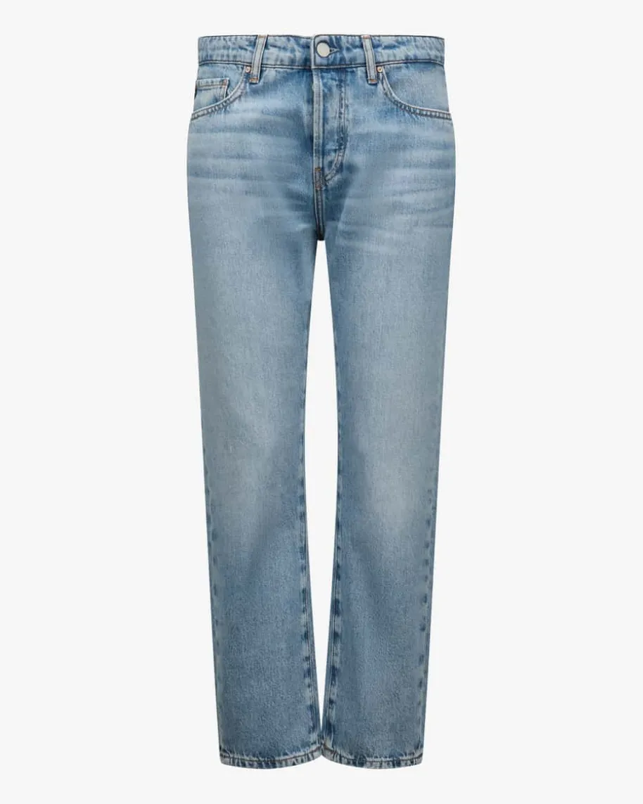 American Jeans Mid Rise Slim für Damen von AG Jeans in Hellblau. Das Modellbegeistert dank schmal zulaufender Passform sowie hochwertiger Baumwoll-Denim-Qualität, während die dezente Waschung einen modischen Vintage-Look kreiert.