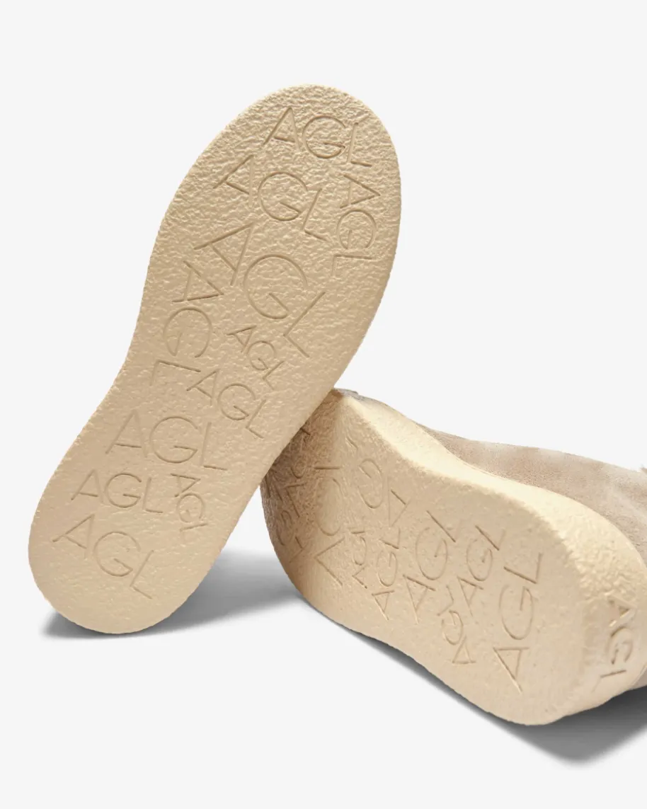 Andrea Beat Stiefeletten für Damen von AGL in Taupe. Das Modell präsentiert sichdank der hochwertigen, soften Veloursleder-Verarbeitung und der markantenSteppnaht in modischer Aufmachung, während das warme Schaffell-Futter einenwinterlichen Favoriten kreiert.