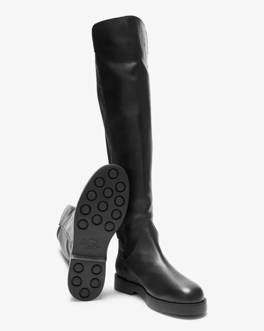 Andrea Stiefel für Damen von AGL in Schwarz. Ein klassischer Begleiter imEquestrian-Look – Mit diesem Glattleder-Modell mit Stretch-Einsätzen hat dasitalienische Label einen eleganten sowie schlichten Reiterstiefel fürvielseitige Kombinationsmöglichkeiten geschaffen.