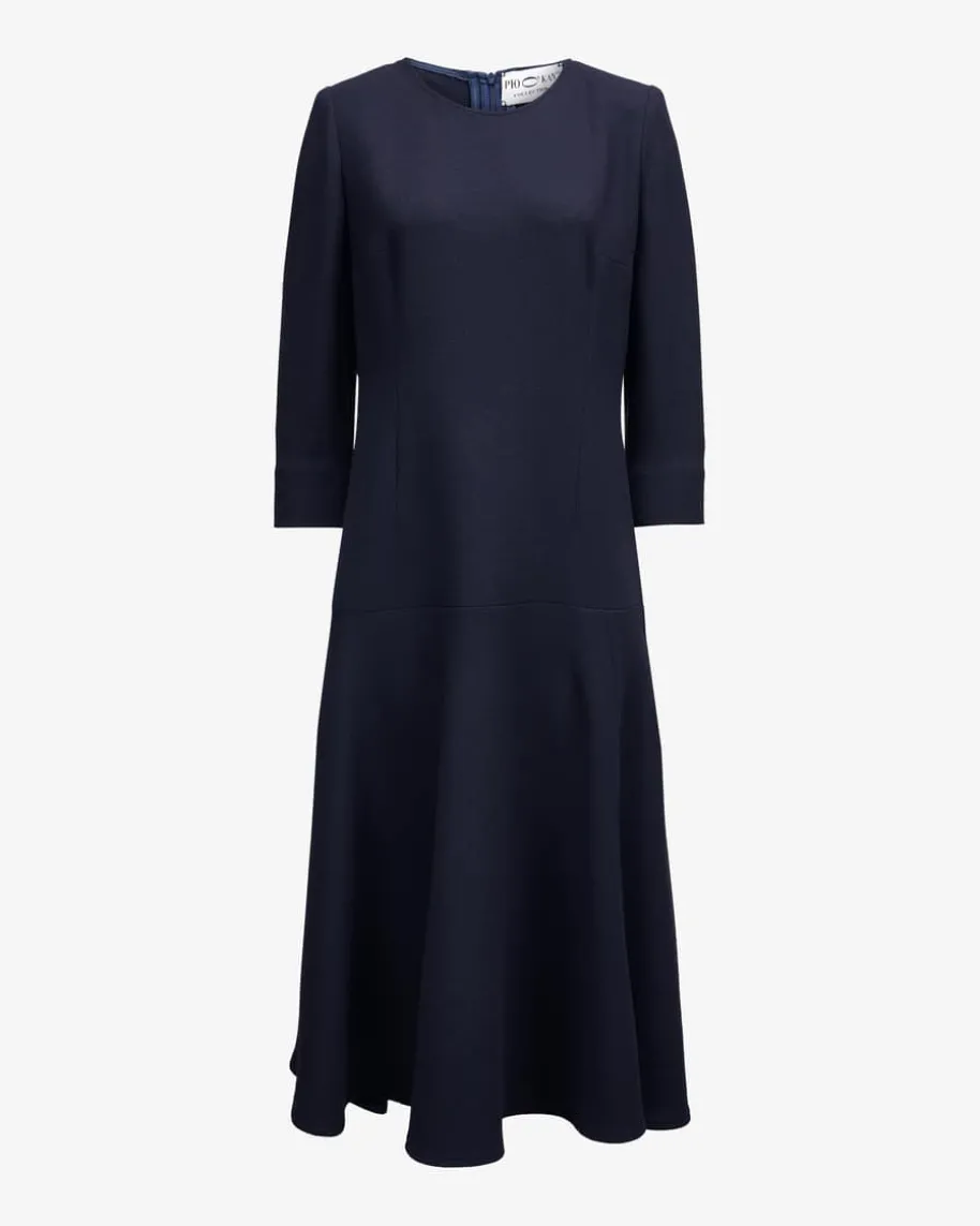 Angelina Kleid für Damen von Pio O’Kan in Marine. Zeitloser Luxus und moderneEleganz prägen den Stil dieses Modells – Die taillierte Silhouette und derausgestellte Rock garantieren femininen Schwung, während die feste Double-Crepe-Qualität einen stilvollen Begleiter kreiert.