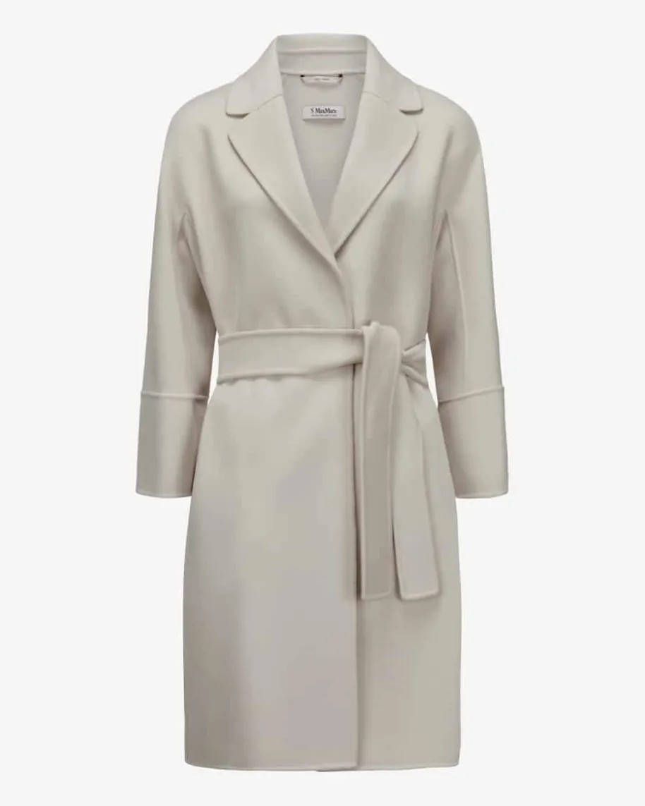 Arona Wollmantel für Damen von ‚S Max Mara in Creme. Mit besonders weicherHaptik, dezenter Oversize-Passform sowie zeitlosen Details präsentiert sich derMantel als stilsicherer Begleiter für kalte Tage.