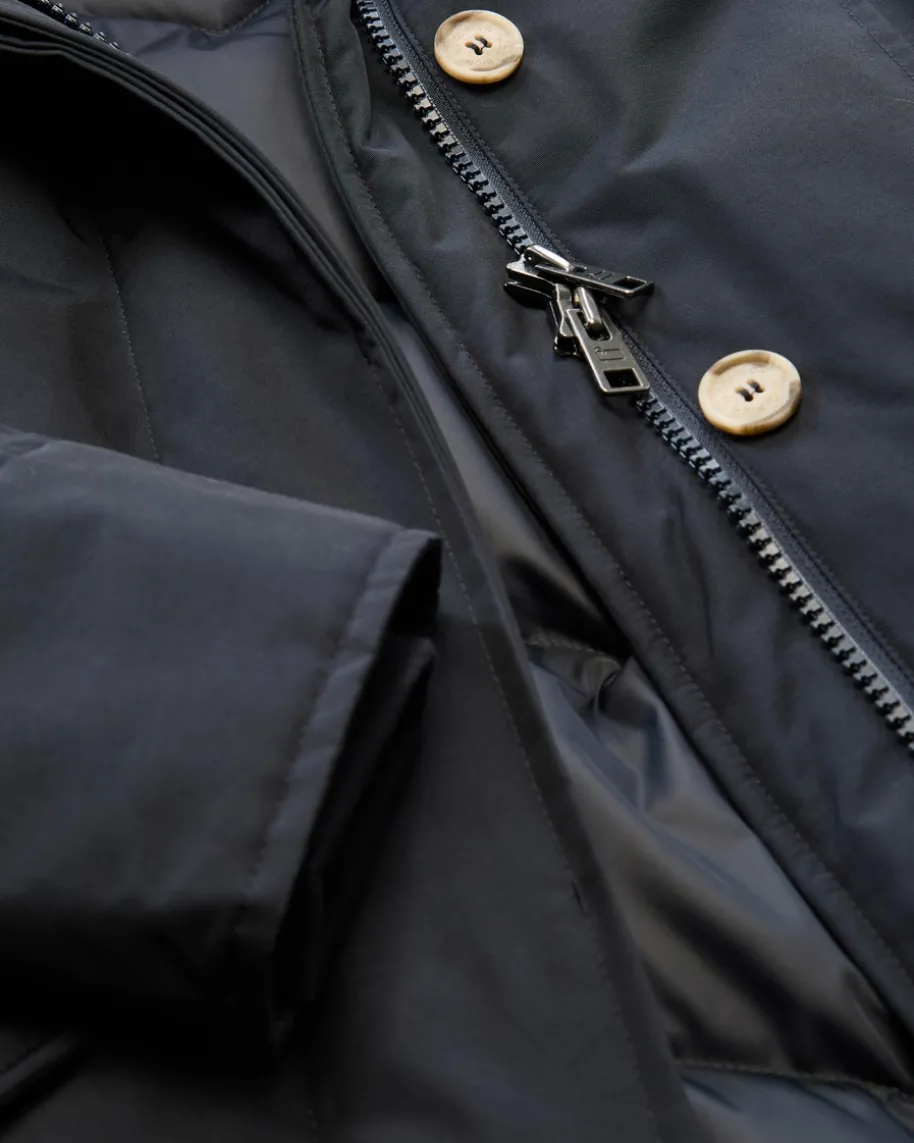 Artic Racoon Parka für Damen von Woolrich in Navy. 1830 von John Rich inPennsylvania gegründet, erfreute sich das Label damals schon großer Beliebtheit– vor allem im Outdoor-Bereich. Robuste funktionale Jacken, Parkas und Mäntelstanden dabei im Vordergrund und bilden, neben der dazugekommenen Freizeitmode,nach wie vor immer noch den Mittelpunkt der vielseitigen Kollektionen vonWoolrich. Das Modell präsentiert sich dank klassischer Aufmachung als zeitloserFavorit, während der Pelzbesatz für besonderes Augenmerk sorgt.