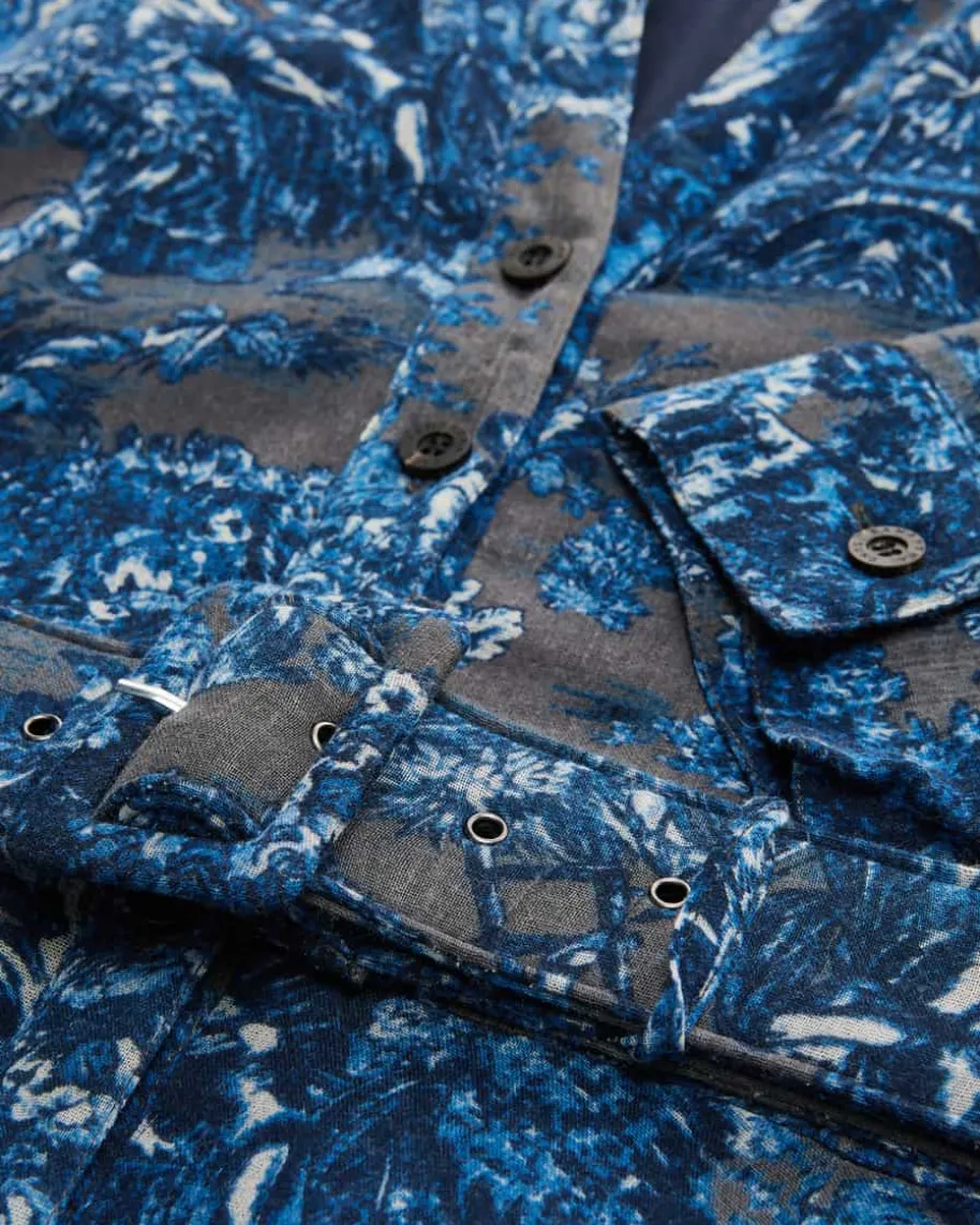 Aster Kleid für Damen von Samantha Sung in Beige und Azur. Das feminine Modellpräsentiert sich dank der Allover-Szenenabbildung im malerischen Stil alsmodischer Favorit, während die semi-transparente Aufmachung der hochwertigenWoll-Qualität zusammen mit den zwei Gürtel-Optionen vielseitige Looksgarantiert.
