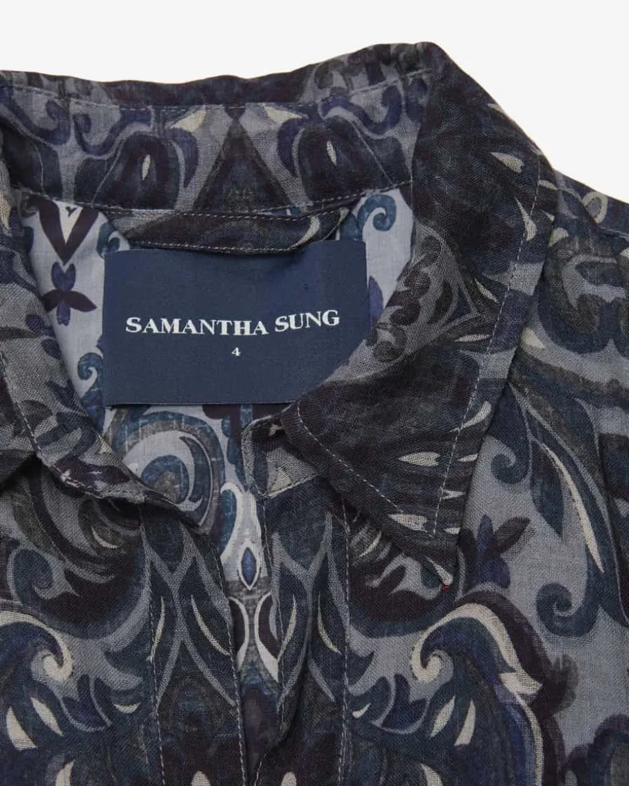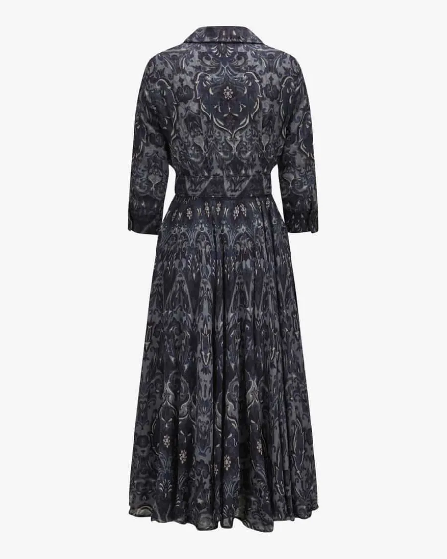Aster Kleid für Damen von Samantha Sung in Dunkelgrau, Dunkelblau und Creme. Dasfeminine Modell präsentiert sich dank des Allover-Prints mit Paisley-Muster alsmodischer Favorit, während die doppellagige Aufmachung der hochwertigen Woll-Qualität zusammen mit den zwei Gürtel-Optionen vielseitige Looks garantiert.
