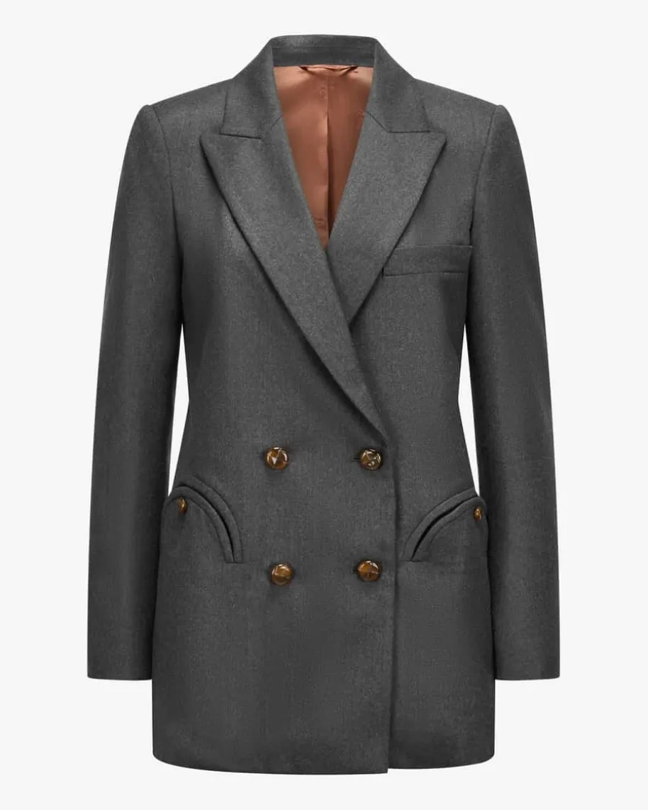 Astoria Everyday Doppelreiher-Blazer für Damen von Blazé Milano in Grau. Dieitalienische Marke steht für exzellente Herren- und Damenblazer – feinsteSchneiderkunst aus Apulien mit modernem Touch. Dank der doppelreihigen Optikpunktet das taillierte Modell als stilsicherer Begleiter, welcher durchklassische Details gekonnt in Szene gesetzt wird. Zusätzlich kreieren dielabeltypisch abgerundeten Taschen einen modischen Hingucker.