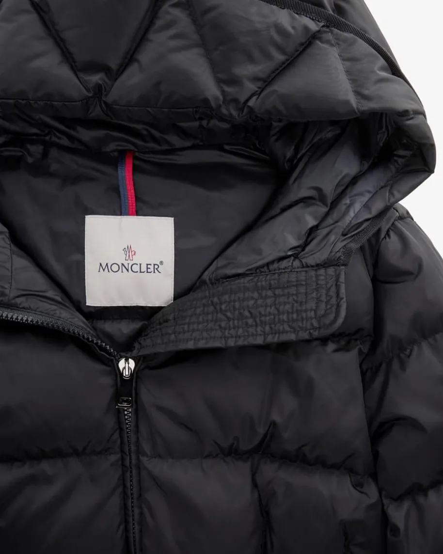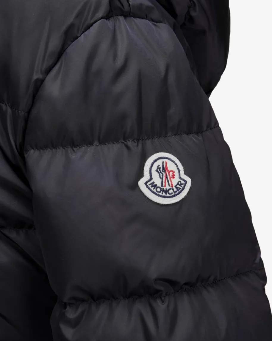 Daunenmantel für Damen von Moncler in Navy. Das Modell in femininer Aufmachungpunktet als Favorit an kühlen Tagen dank der hochwertigen Daunen-Feder-Füllung,während die changierende Stepp-Optik in Verbindung mit klassischen Details einenedlen Touch verleiht.