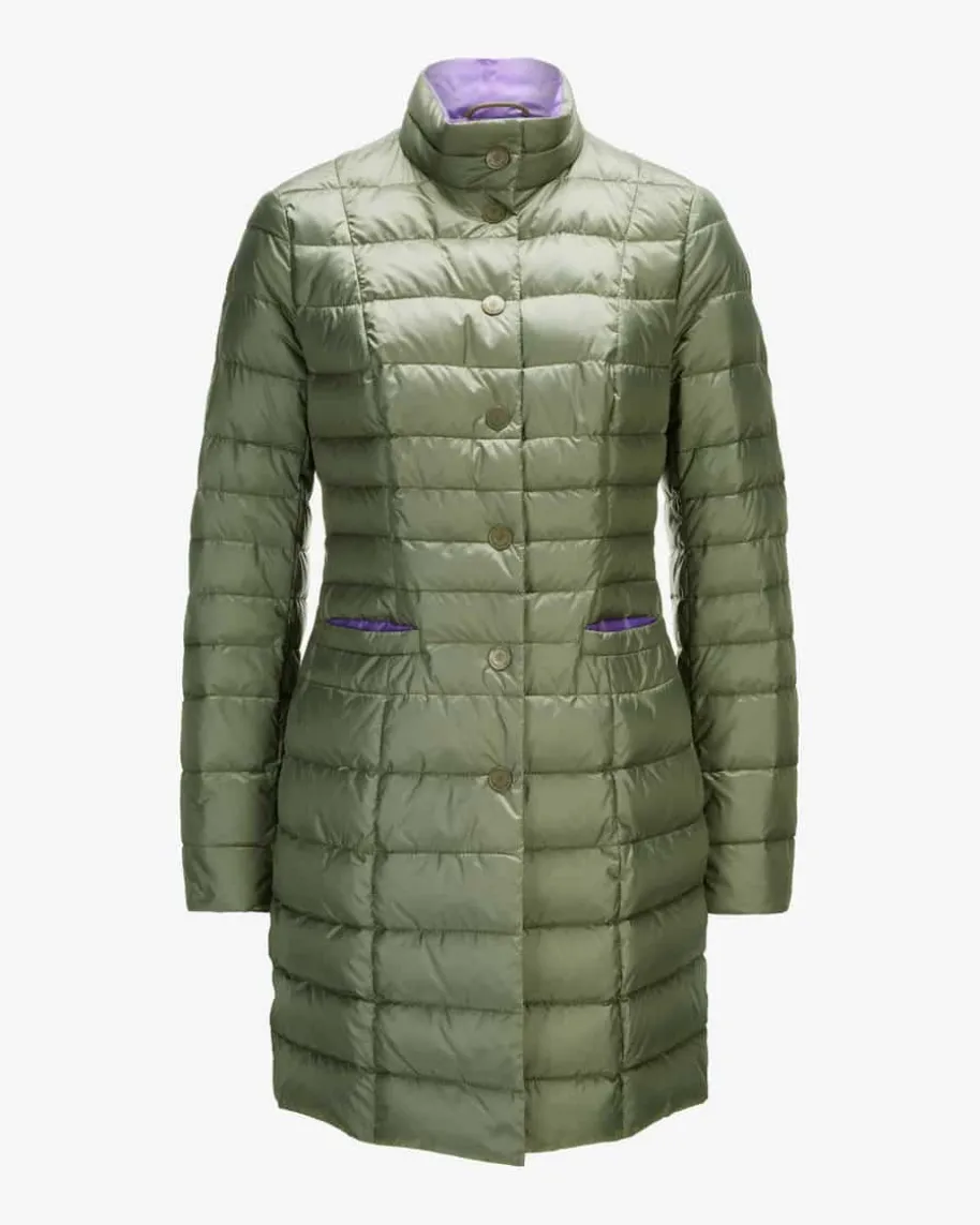 Babette Mantel für Damen von Habsburg in Oliv. Das Modell begeistert dank desStepp-Musters als zeitloser Übergangs-Favorit, während die Wattierung Schutz vorKälte bietet.