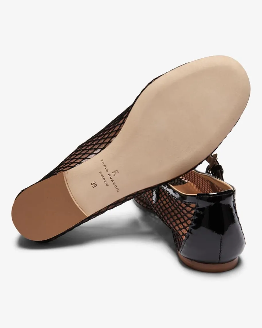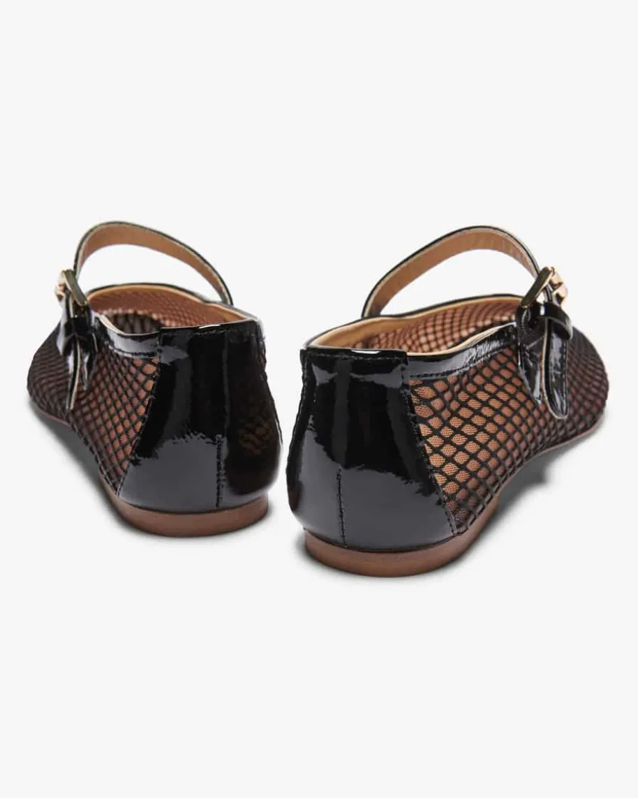 Ballerinas für Damen von LODENFREY in Schwarz. Ein eleganter Sommer-Eyecatcher -Das Modell präsentiert sich in semi-transparentem Design in doppellagiger Mesh-und Netz-Aufmachung, welche durch die changierenden Lackleder-Elemente stilvollergänzt wird. Der verstellbare Riemen sorgt zugleich für einen optimalen Halt.
