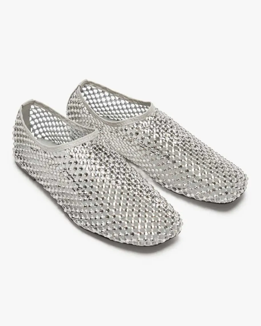 Ballerinas für Damen von Strategia in Hellgrau. Das Modell avanciert dank derSchmuckstein-Applikationen gepaart mit der Netz-Aufmachung zum modischenBlickfang, während der elastische Bund für einen perfekten Sitz garantiert.