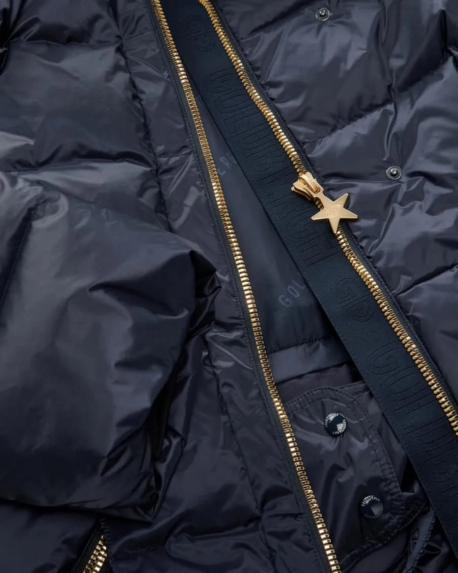 Bea Skijacke für Damen von Goldbergh in Navy. Dieses Modell mit hochwertigerDaunen-Füllung beschert warme Tragemomente, während unzähligeAusrüstungsmerkmale einen treuen Begleiter für jedes Ski-Wetter schaffen. Diegoldfarbenen Details sorgen für modische Akzente, welche die feminine Silhouettegekonnt unterstreichen.