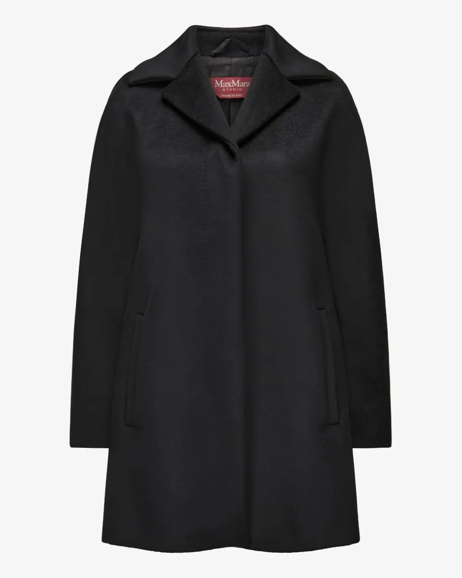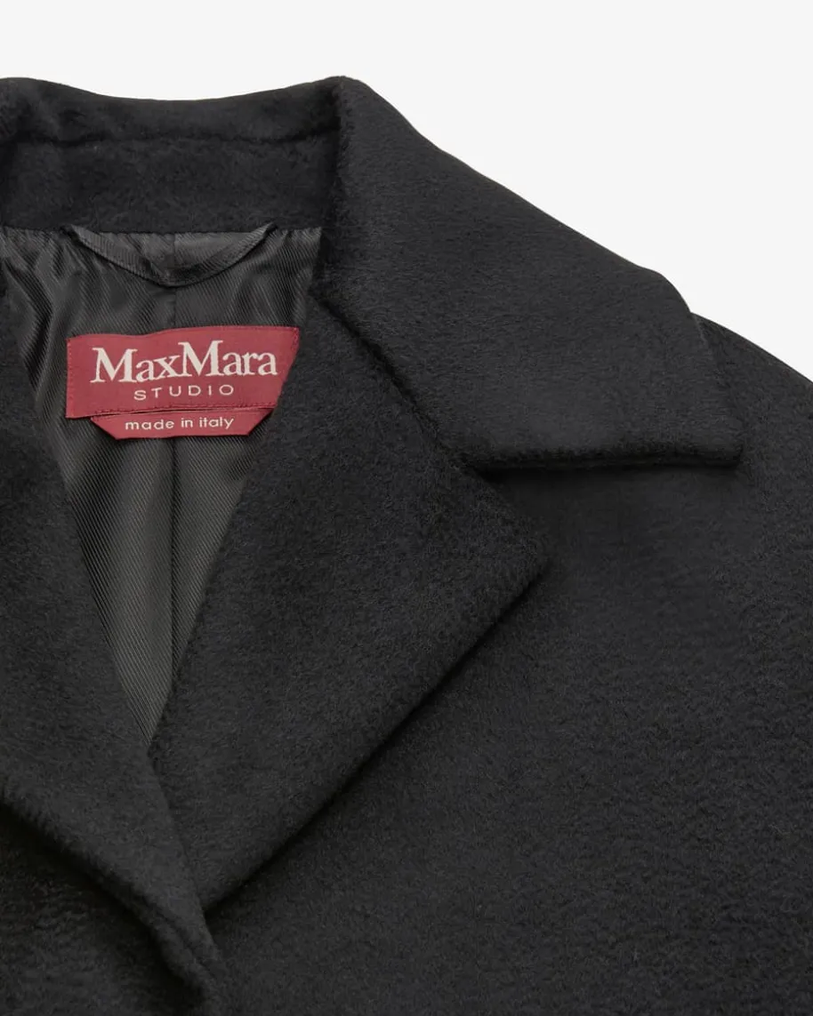 Belize Wollmantel für Damen von Max Mara Studio in Schwarz. Das Modell überzeugtdank der hochwertigen Pure New Wool Schurwoll-Qualität mit einer besondersweichen Haptik, während die minimalistische Aufmachung mit verdeckterKnopfleiste einen zeitlos-eleganten Kurzmantel kreiert.