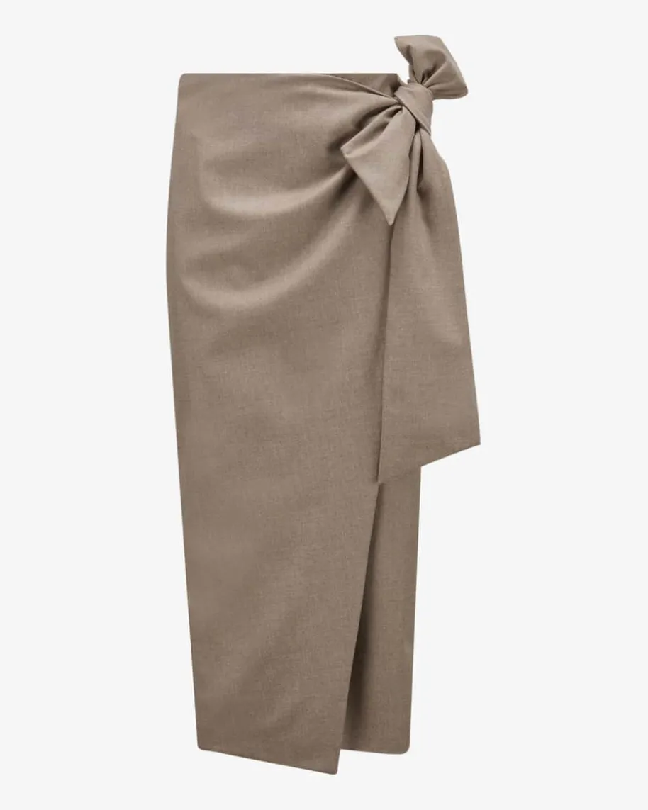 Bingo Cashmere-Wickelrock für Damen von Max Mara in Taupe. Ein eleganter Lookmit modischem Twist – Das Modell überzeugt dank hochwertiger, leicht elastischerCashmere-Qualität mit einem soften Griff, während die Wickel-Aufmachung mitgeknoteter Schluppe einen stilvollen Power-Look kreiert.