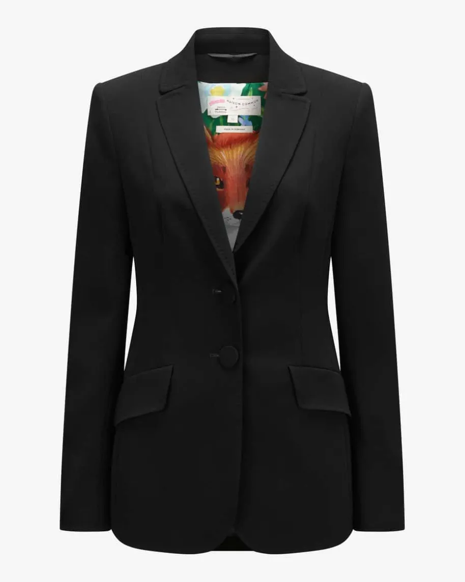 Blazer für Damen von Maison Common in Schwarz. Das taillierte Modell begeistertdurch das cleane Design sowie die fließende Material-Verarbeitung, während derklassische Reverskragen den Look gekonnt untermalt. Zugleich rundet diefarbenfrohe Innenseite das Piece labeltypisch ab.