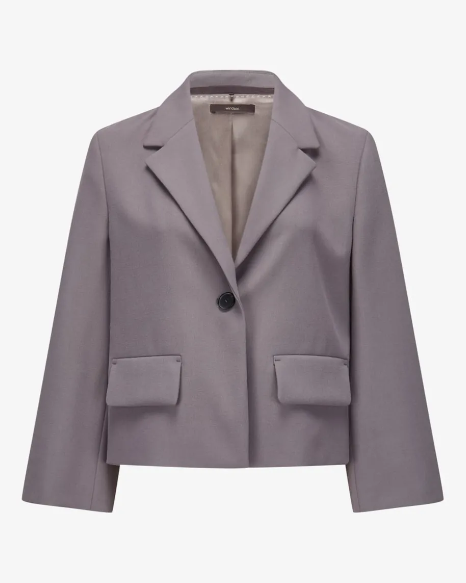 Blazer für Damen von Windsor in Mauve. Für elegante Power-Auftritte – Das Modellpunktet mit verkürzter sowie ausgestellter Passform und kreiert so einenmodischen Look, während klassische Details das Gesamtbild stilvoll vollenden.