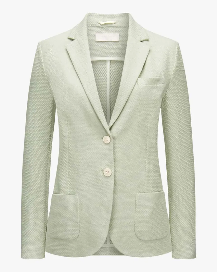 Blazer für Damen von Circolo 1901 in Mint. Dieses Modellpräsentiert sich mit raffinierter Struktur und elastischerMaterial-Qualität, die für einen angenehmen Tragekomfortsorgt. Die klassischen Details runden den Look harmonischab.
