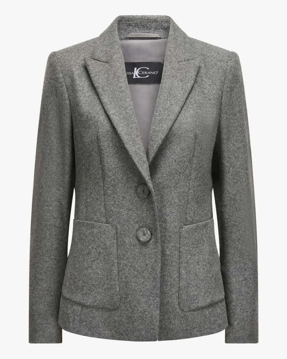 Blazer für Damen von Luisa Cerano in Grau. Das deutsche Modelabel Luisa Ceranobegeistert mit luxuriöser, femininer Damenmode, die durch hochwertigeMaterialien, lässige Schnitte, vielfältige Farben und subtile Eleganz überzeugt.Auch dieses Modell begeistert mit weichem Woll-Mix, der für angenehmenTragekomfort sorgt. Die taillierte Silhouette mit klassischen Details rundet denvielseitigen Office-Begleiter gekonnt ab.