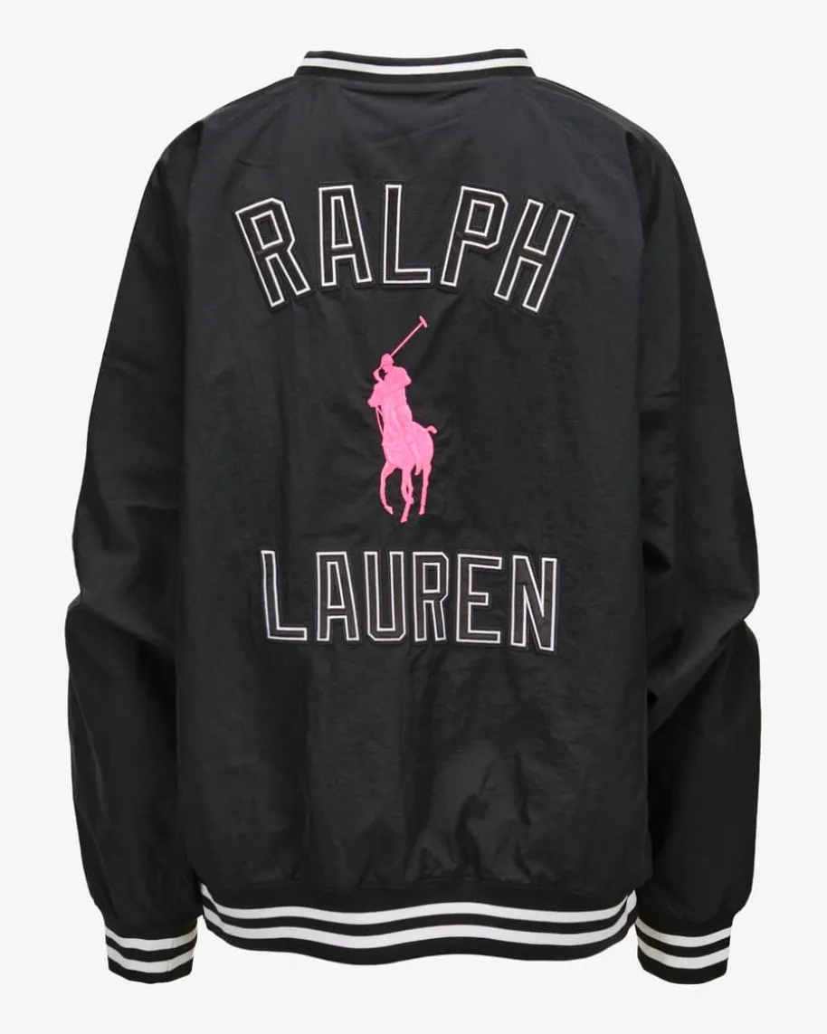 Blouson für Damen von Polo Ralph Lauren in Schwarz, Weiß und Pink. EineIkone des amerikanischen Lifestyles – sportlich, preppy, klassisch. Das Modellin besondere Aufmachung überzeugt in Crash-Dessin, während die gestreiftenBündchen und die kontrastfarbenen Poloreiter-Strickereien den Gesamtlook gekonntabrunden. Ein moderner Begleiter für die Übergangszeit.