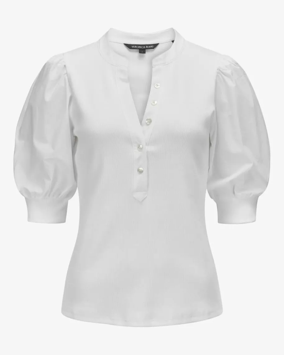 Coralee T-Shirt für Damen von Veronica Beard in Weiß. Während der Material-Mixan den angesetzten Puffärmeln das gewisse Etwas verleiht, sorgt die Feinripp-Qualität für einen hohen Tragekomfort. Zudem runden die changierenden Knöpfe denGesamt-Look modisch ab.
