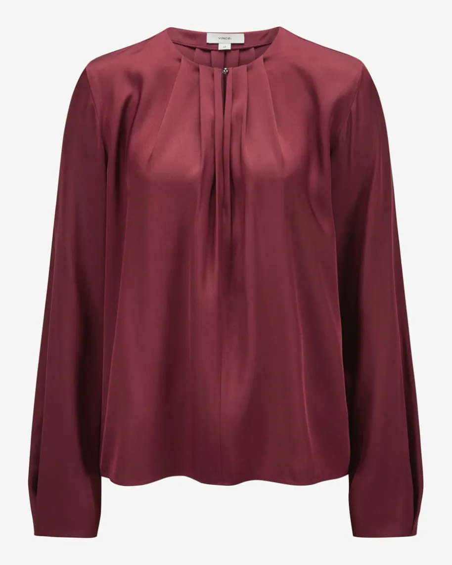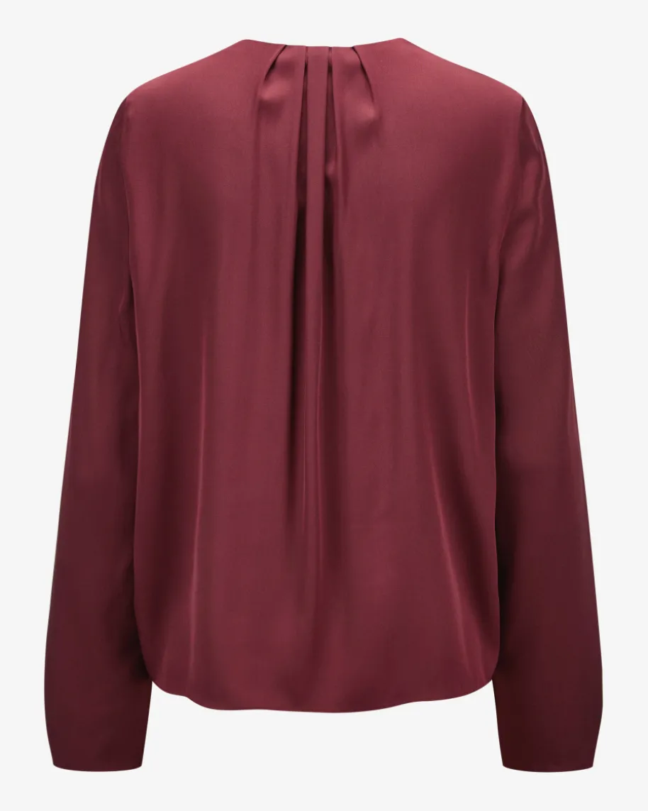Bluse für Damen von Vince in Bordeaux. Dieses Modell in angenehmerHaptik und hochwertigem Seidenmix, avanciert dank der Falten-Details zueinem zeitlosen Klassiker. Ob lässig oder elegant gestylt, diese Bluse ist einabsolutes Must-Have, das in keinem Kleiderschrank fehlen darf.