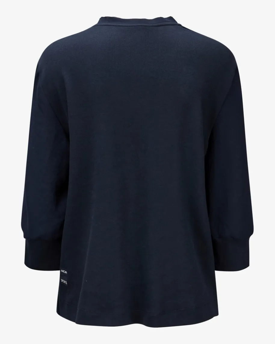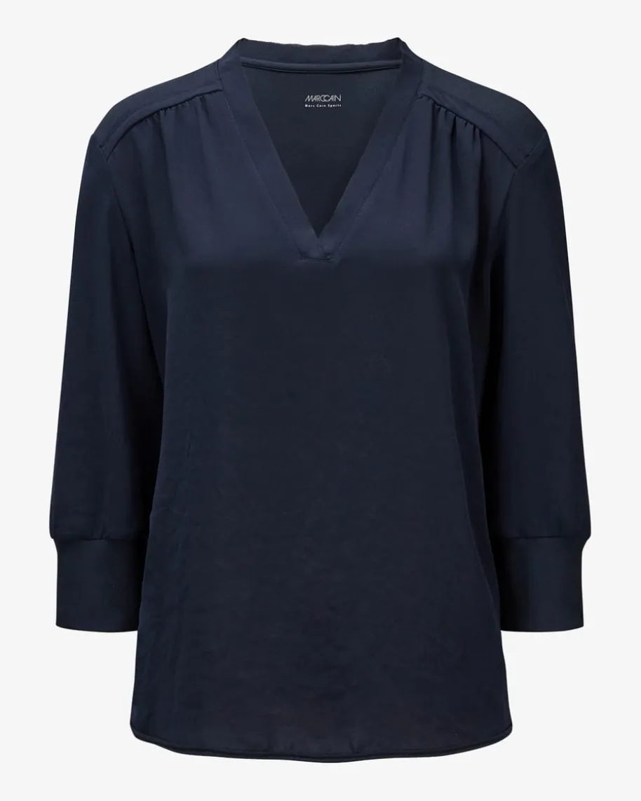 Bluse für Damen von Marc Cain in Navy. Das Modell begeistert mit sportivemDesign, das durch die legere Passform und die Rippstrick-Details gekonntunterstrichen wird. Der raffinierte Material-Mix mit elastischer Rückseite sorgtfür angenehmen Tragekomfort und rundet den Style harmonisch ab.