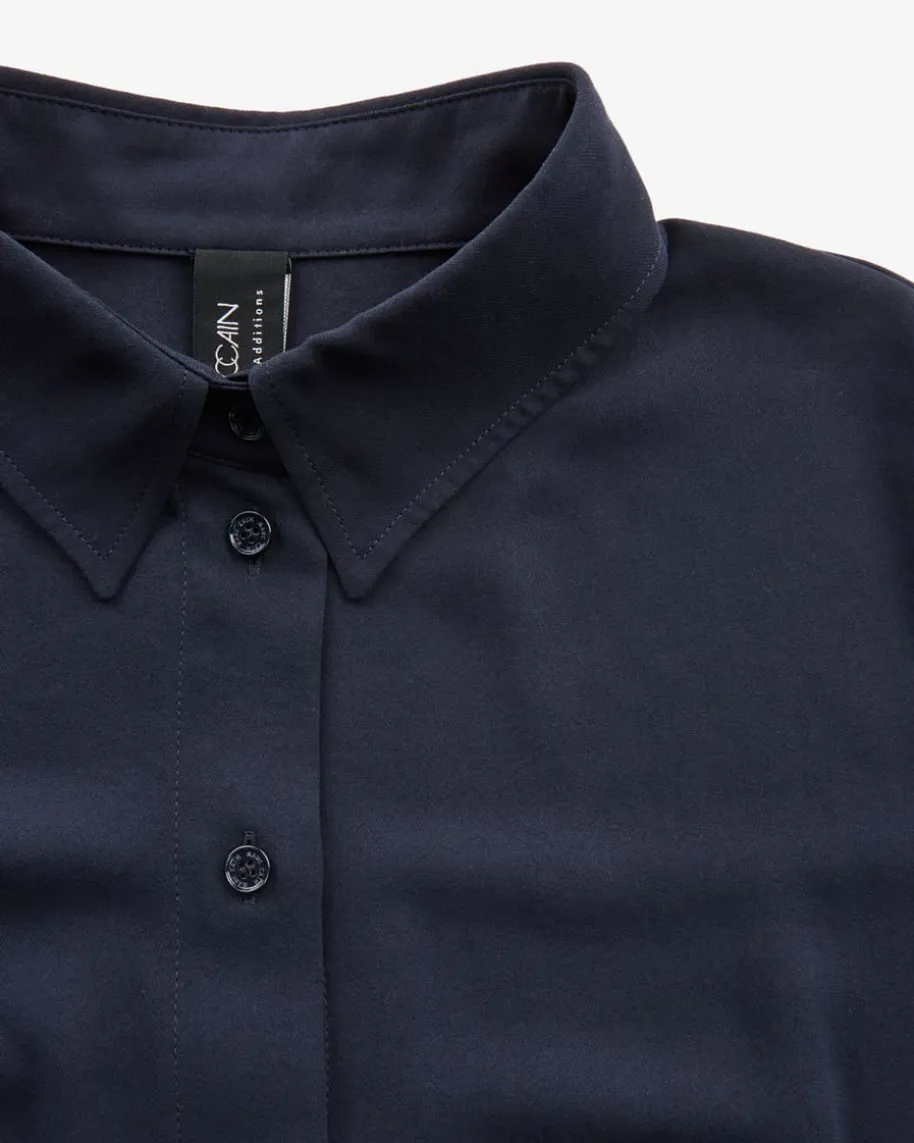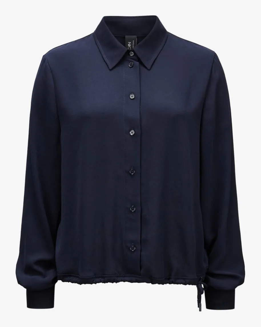 Bluse für Damen von Marc Cain in Navy. Das Modell begeistert mit zarterMaterial-Qualität, die durch ihre fließende Optik eine feminine Note schafft.Der Tunnelzug am Saum verleiht zusammen mit den sportiven Rippstrick-Bündchen anden Ärmelenden einen legeren Touch, während klassische Details das Gesamtbildstilvoll abrunden.