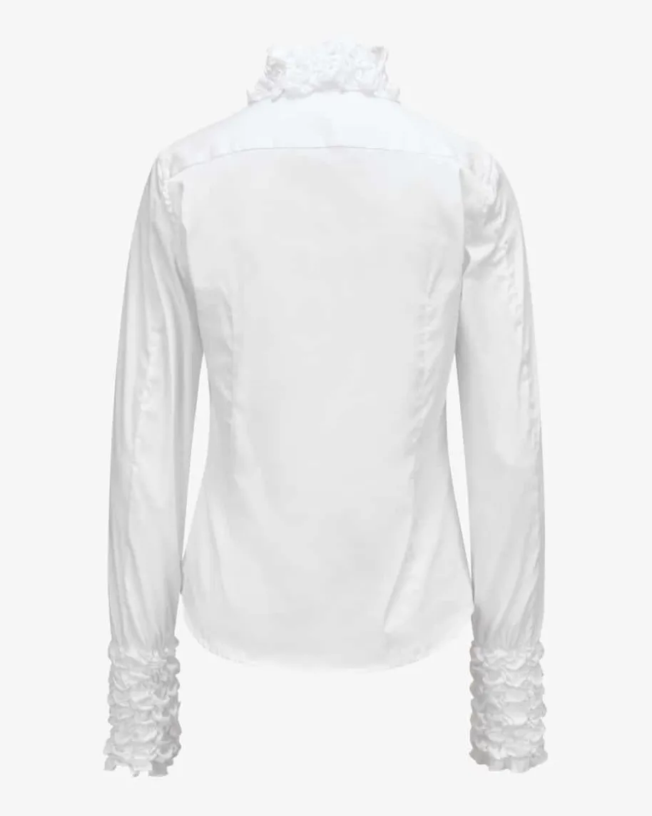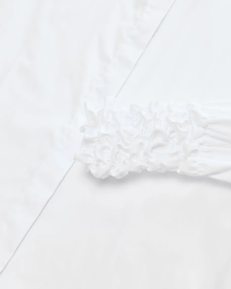 Bluse für Damen von Caliban in Weiß. Das Modell aus elastischer Baumwollepräsentiert sich in femininer Silhouette, während die extravaganten Smok-Abschlüsse einen edlen Charakter verleihen.