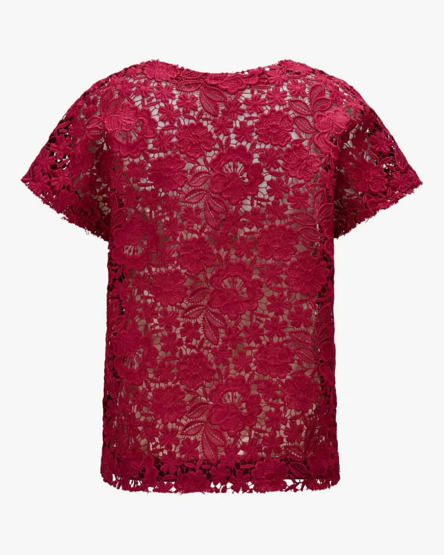 Blusenshirt für Damen von Parosh in Himbeere. Das Modell in romantischerSpitzen-Aufmachung überzeugt im Lagenlook, während die schlichte Schnittformeinen eleganten Begleiter für vielseitige Styles schafft.