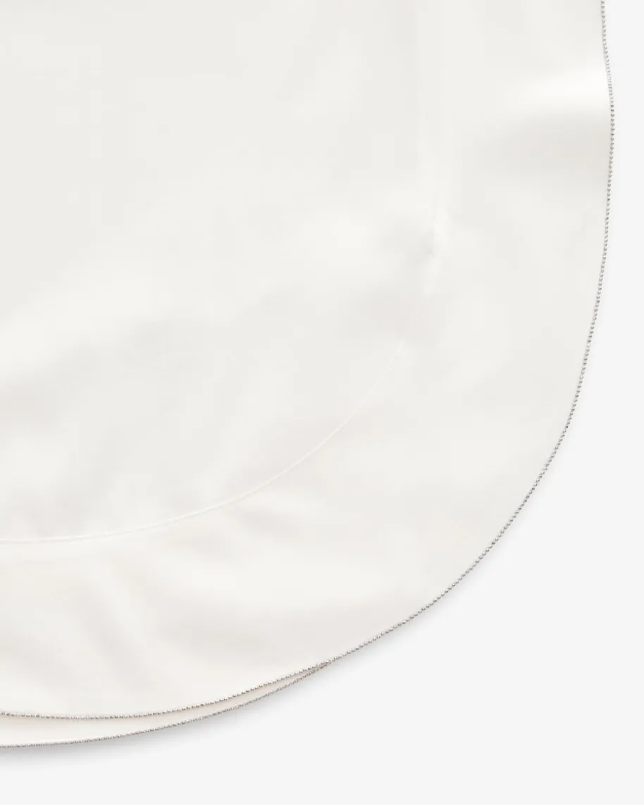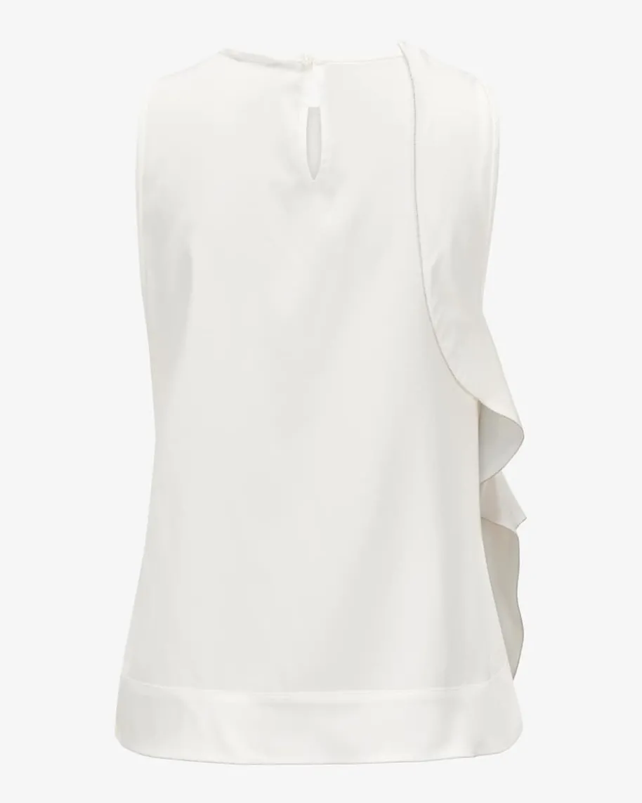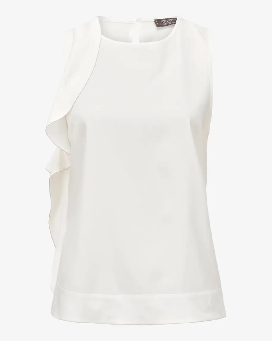 Blusentop für Damen von Peserico in Off-White. Das Modell überzeugt dank deselastischen Seiden-Mix mit einem besonders angenehmen Tragegefühl, während dasasymmetrische Design mit beidseitigem Volant-Detail und einseitig abgerundetemSaum einen besonderen Favoriten mit Sinn für Stil schafft. Die feinenSchmuckketten-Applikationen setzen zudem charakteristische Akzente.
