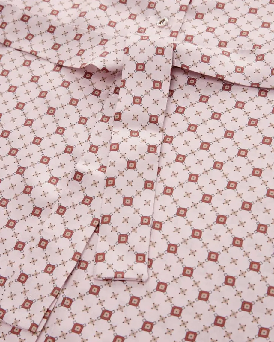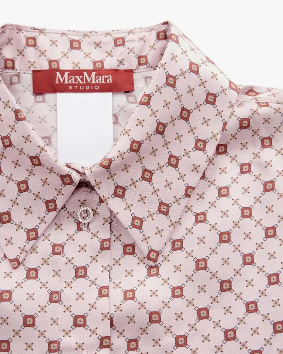 Boccale Seidenbluse für Damen von Max Mara Studio in Rosé, Beige und Terrakotta.Das Modell begeistert mit fließender Seiden-Qualität, die sowohl haptisch alsauch optisch begeistert. Das stilvolle Medaillon-Muster verleiht zudem einefeminine Eleganz, welche durch das abnehmbare Taillenband gekonnt unterstrichenwird.